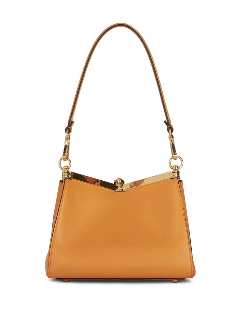 orange calf leather gold-tone hardware logo pendant clasp fastening adjustable detachable shoulder strap single detachable top handle main compartment metal feet