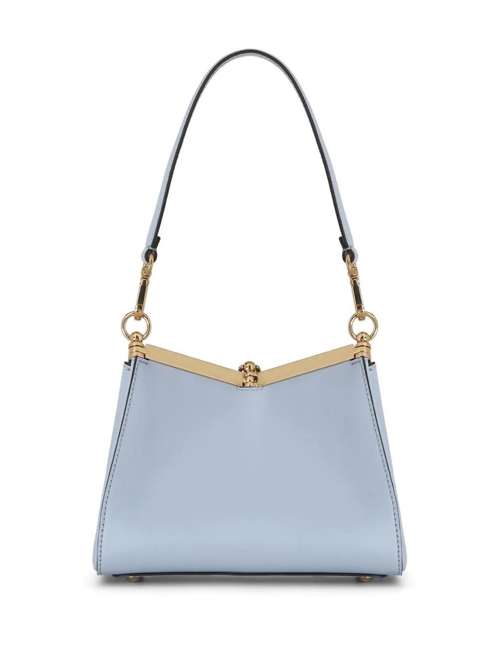light blue calfskin gold-tone hardware logo charm signature Pegaso motif single flat top handle clasp fastening adjustable detachable shoulder strap