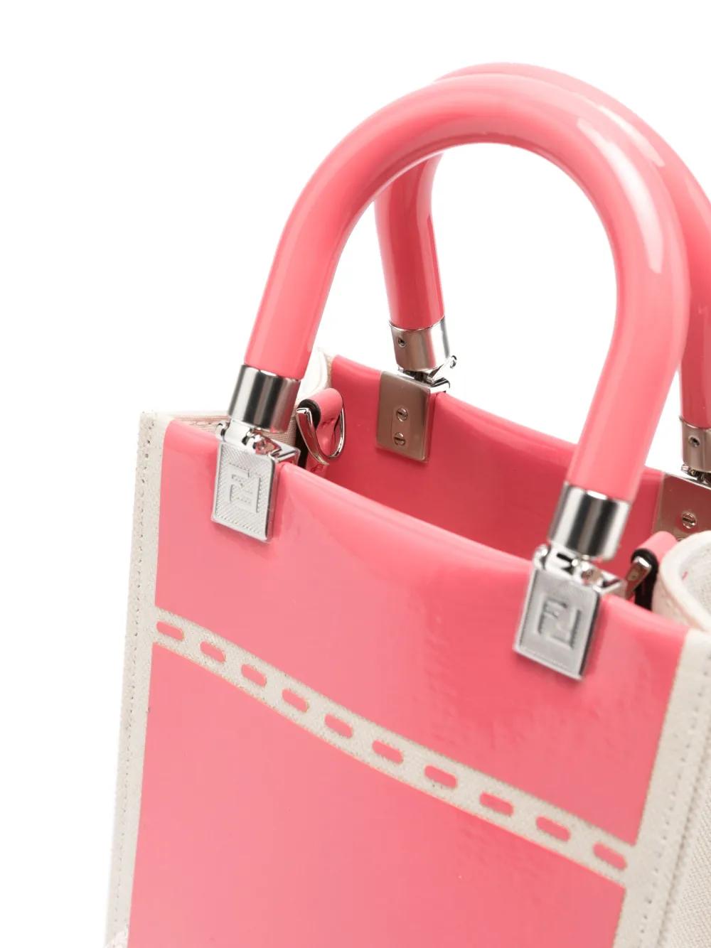 white/bubblegum pink cotton logo print to the front canvas two top handles detachable shoulder strap silver-tone hardware
