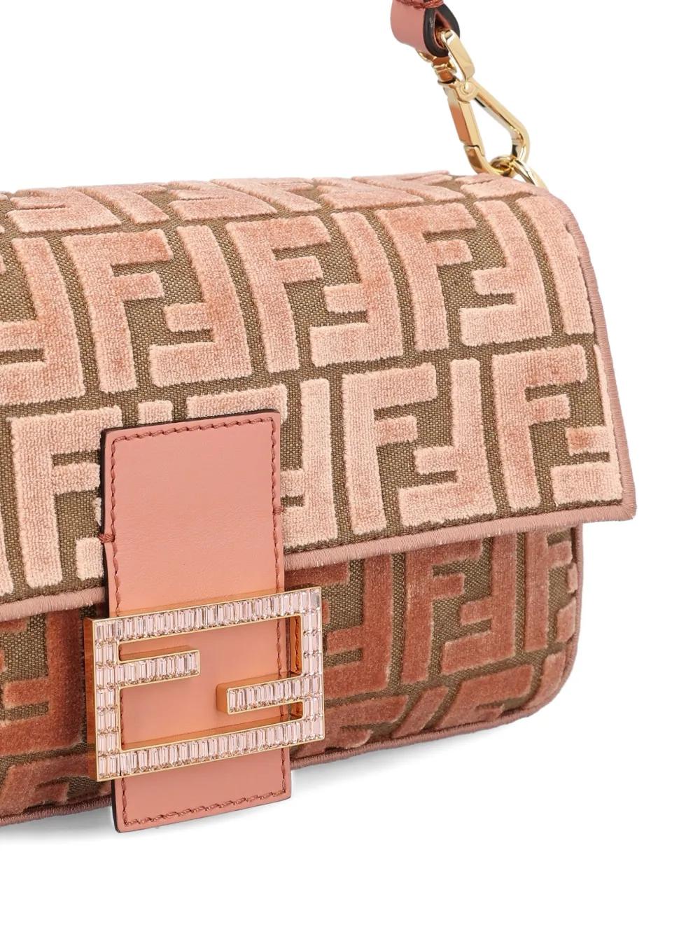 pink jacquard velvet FF monogram crystal-embellished clasp adjustable detachable leather handle magnetic fastening