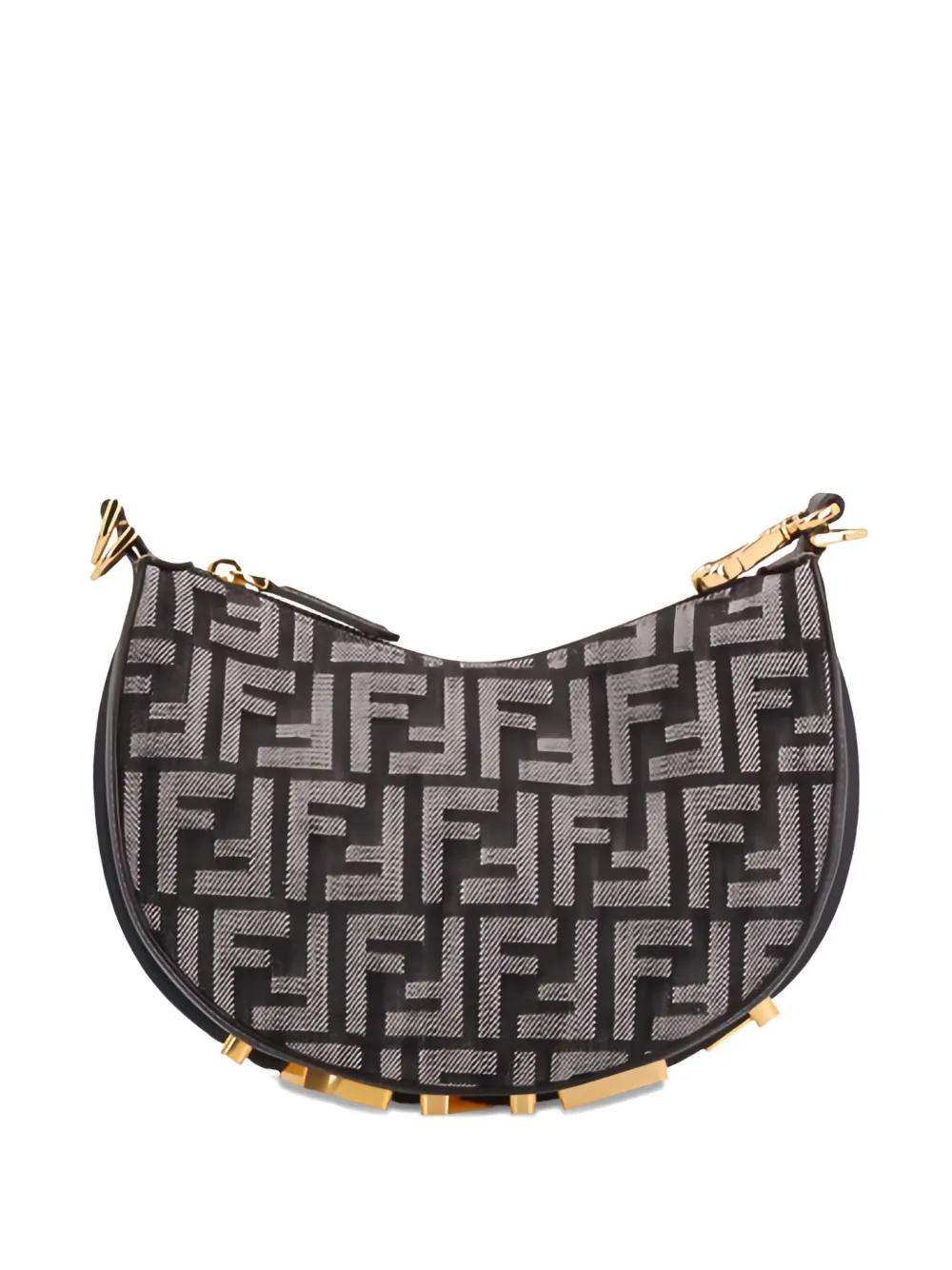 dark blue FF jacquard top zip fastening adjustable and detachable shoulder strap gold-tone hardware