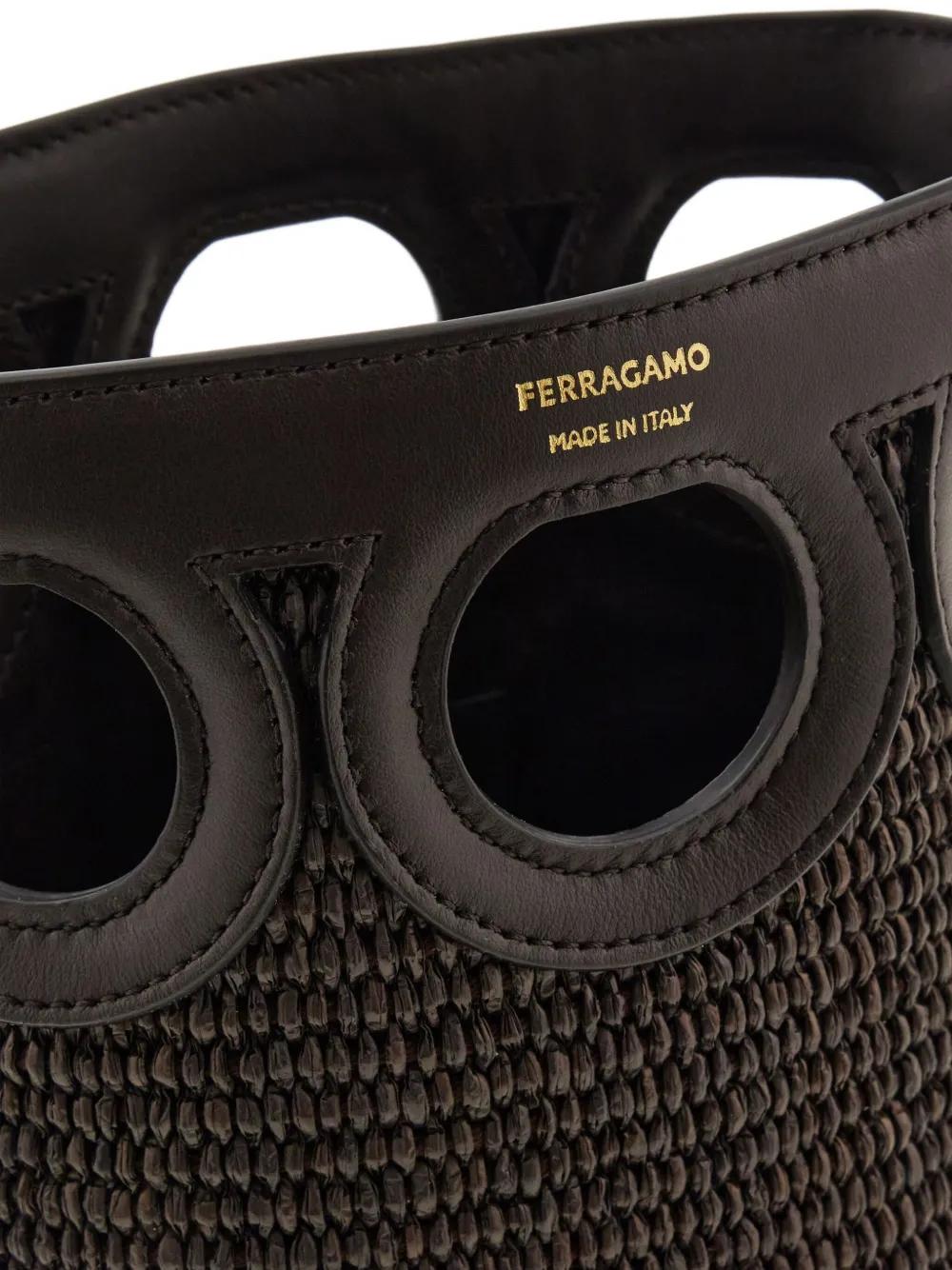 jet black leather smooth grain tonal stitching gold-tone hardware Gancini flip-lock fastening magnetic fastening adjustable shoulder strap main compartment internal card slots