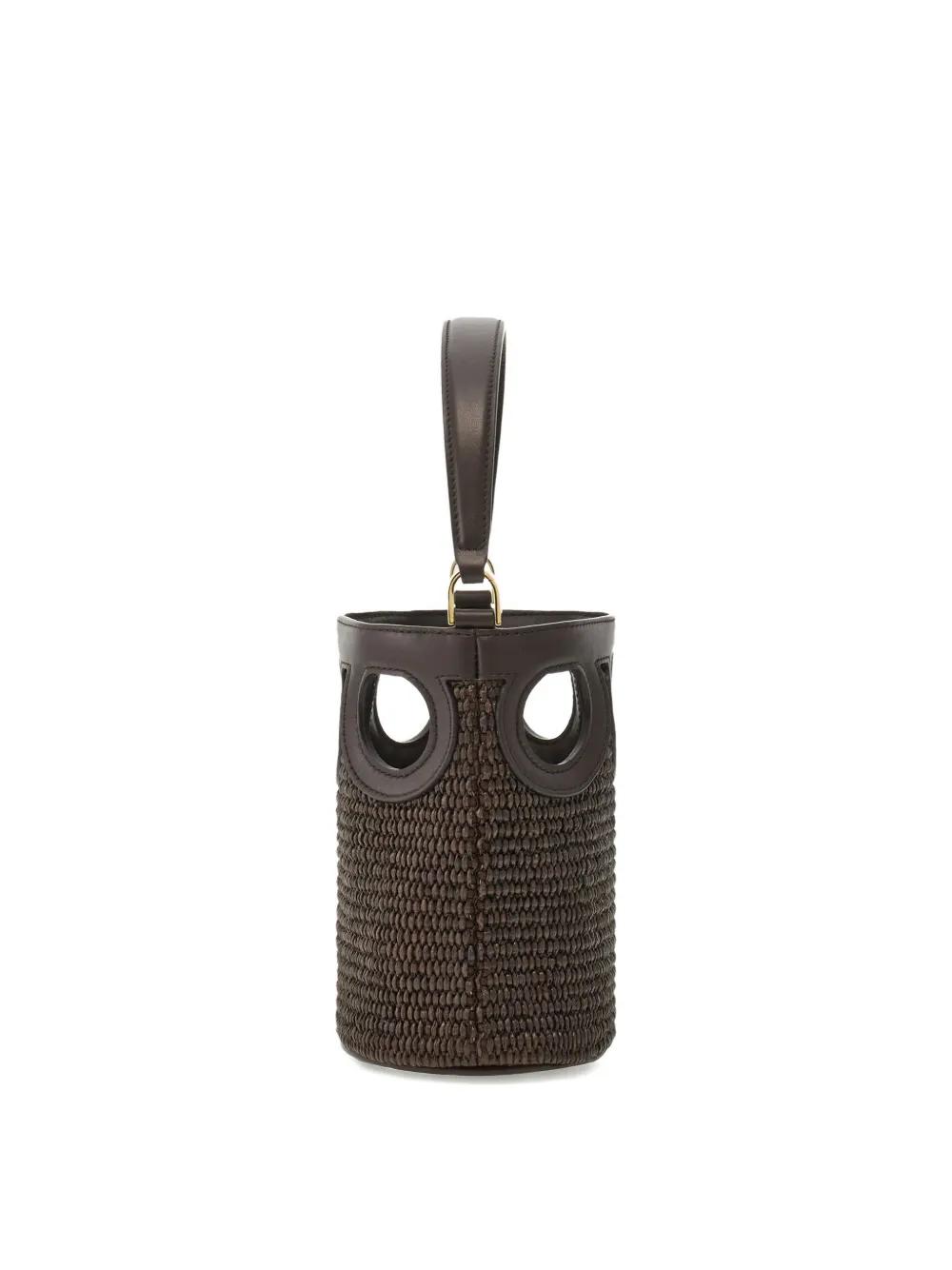 caramel brown magnetic fastening two long top handles logo stamp to the front full lining