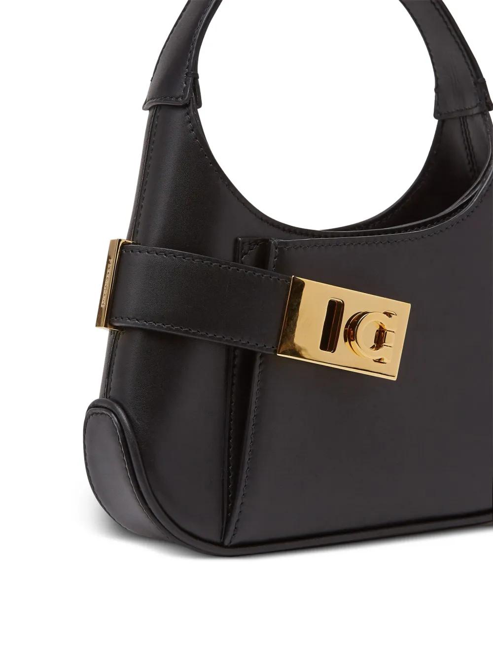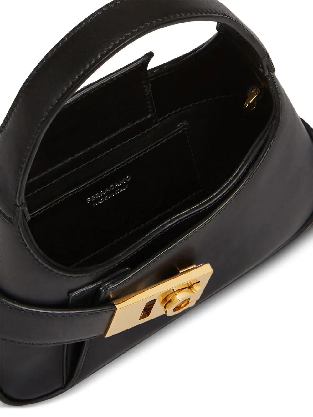 black calf leather/lambskin Gancini buckle single top handle internal slip pocket curve-edge body main compartment