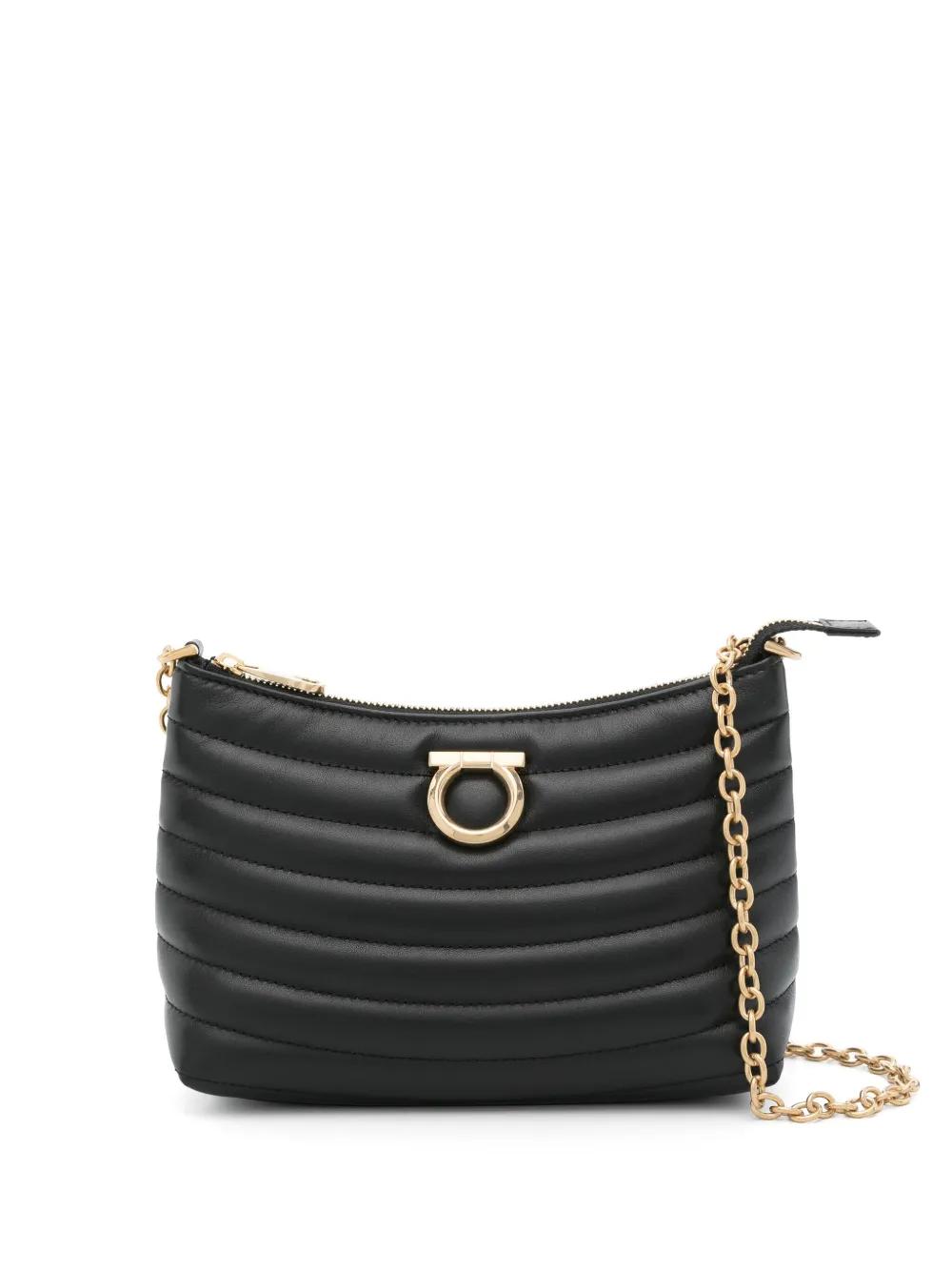 black top zip fastening leather and chain-link shoulder strap internal card slot padded design