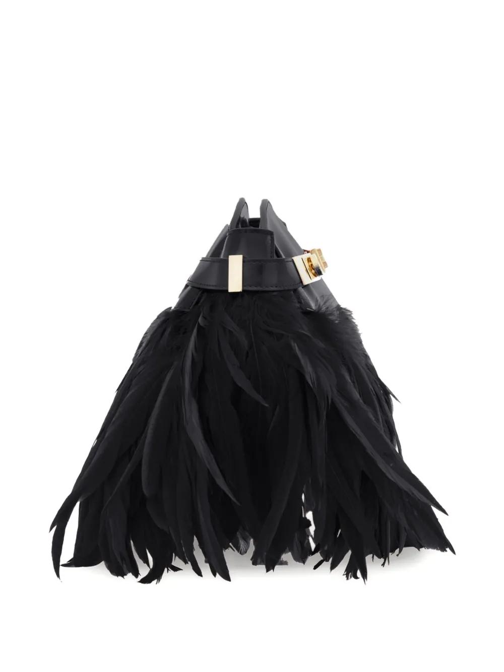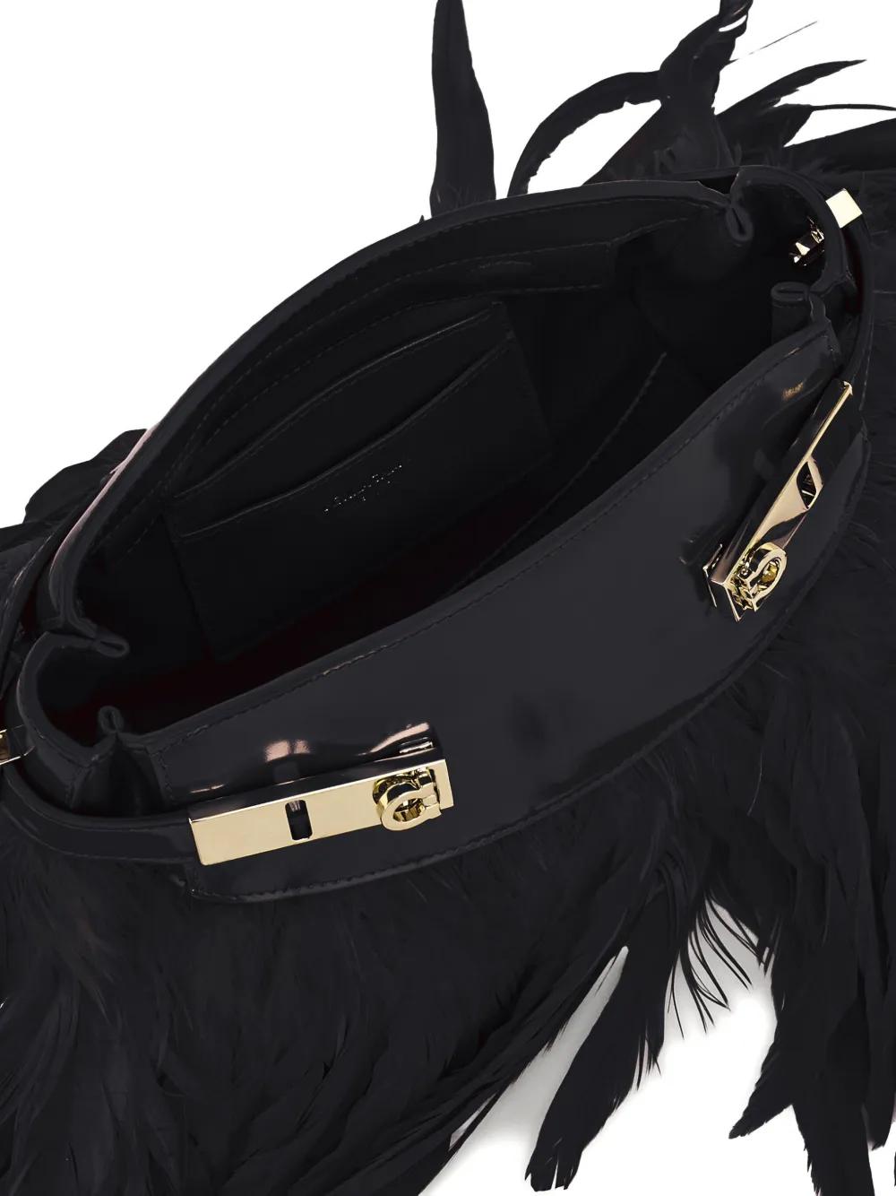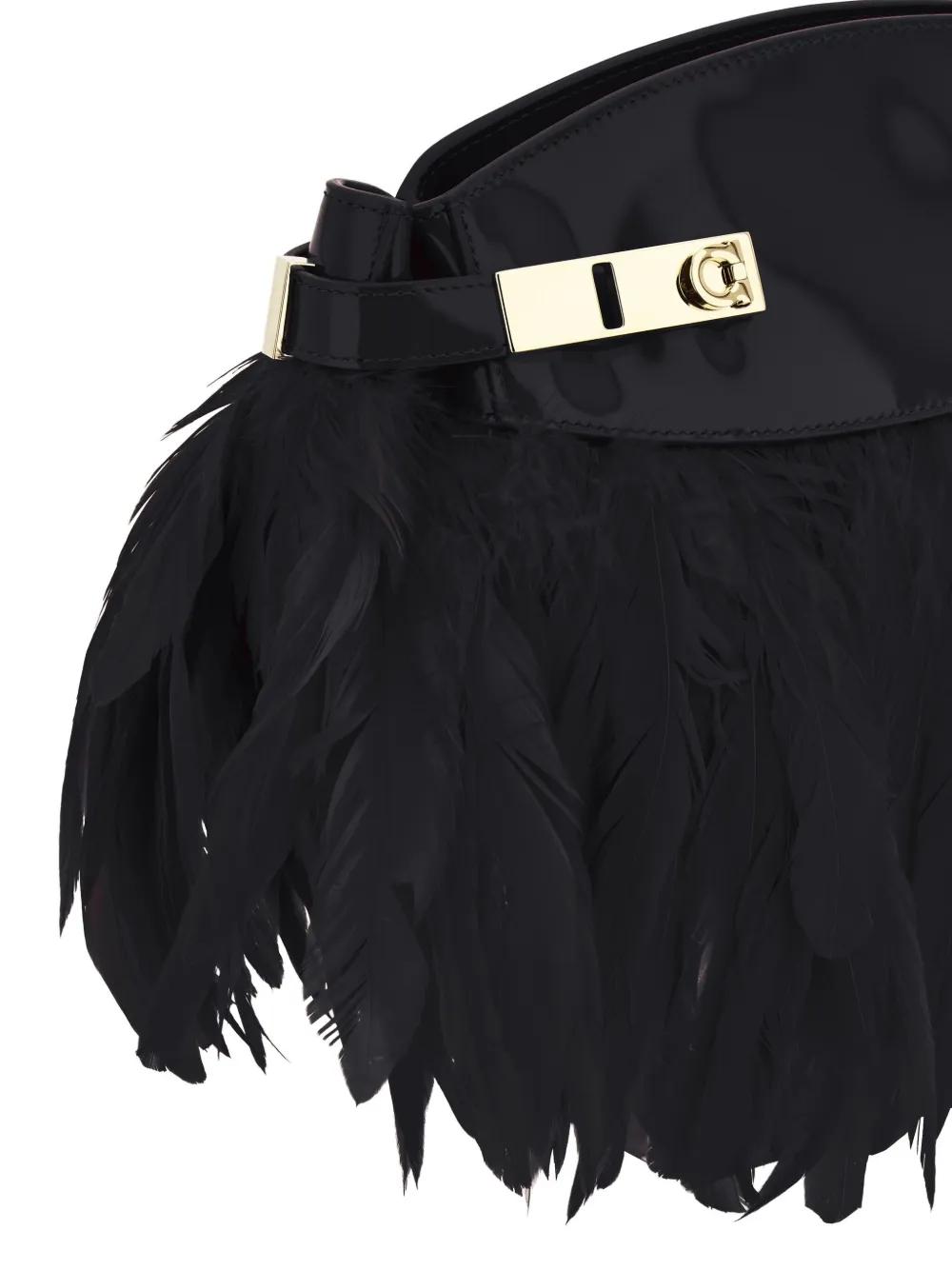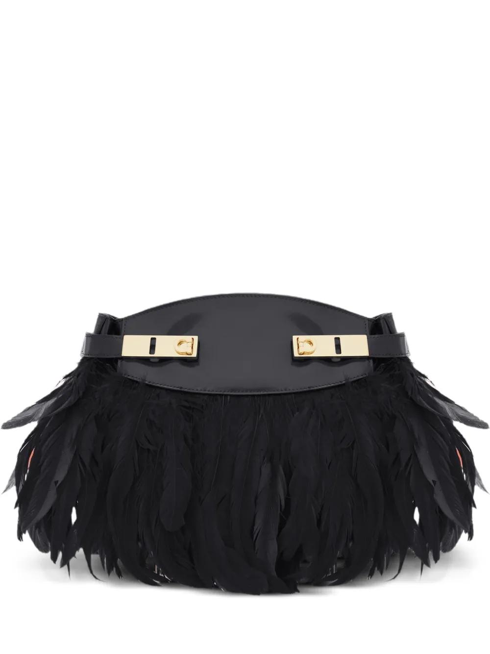 Ferragamo Hug feather-trimmed cross body bag - Black