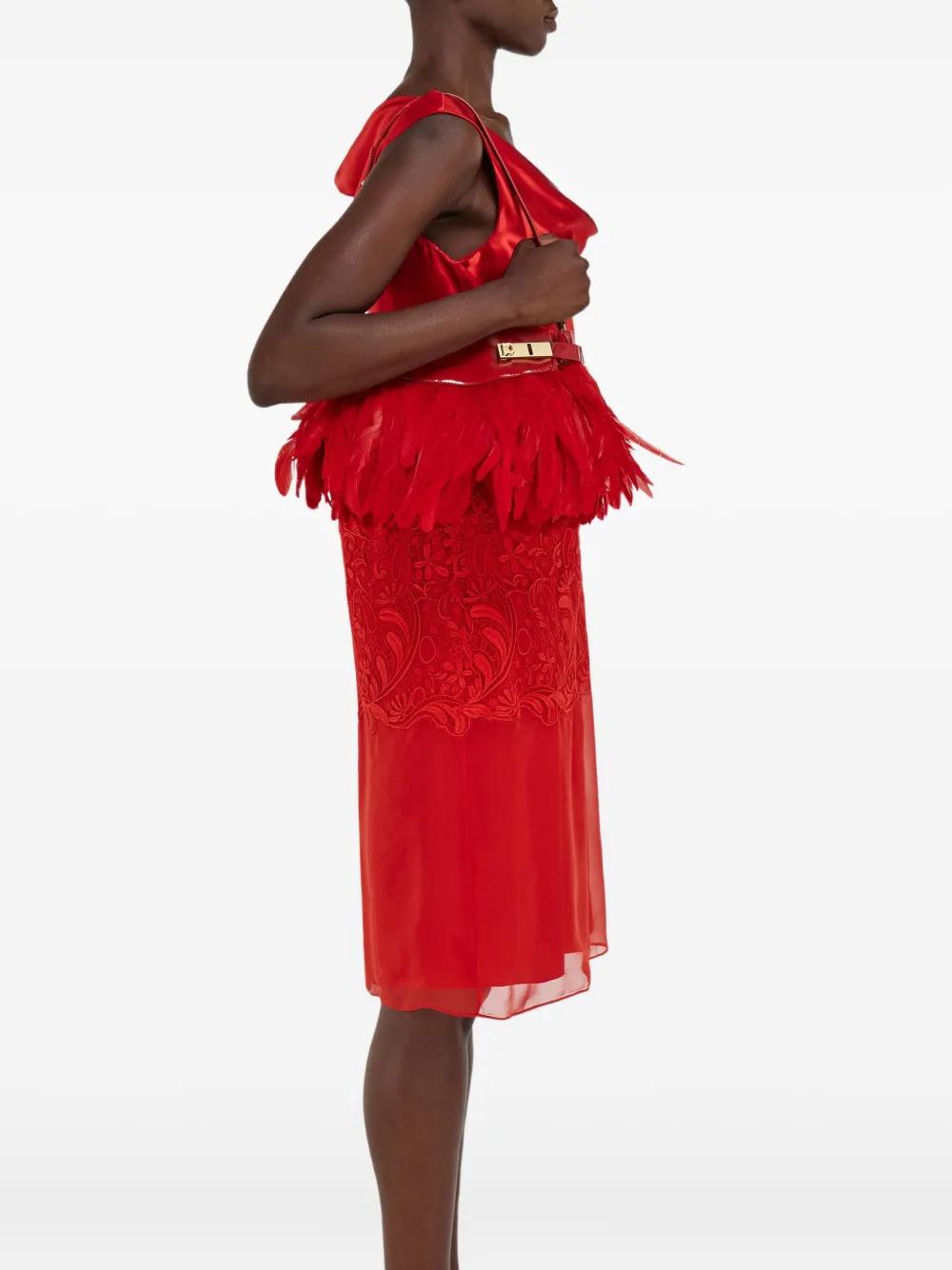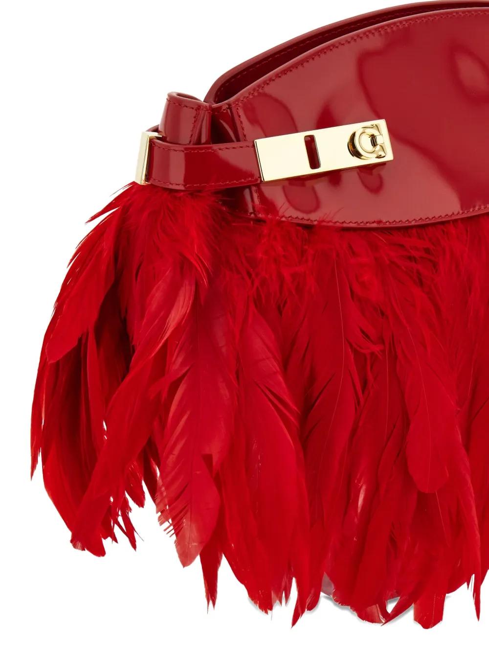 Ferragamo Hug feather-trimmed cross body bag - Red