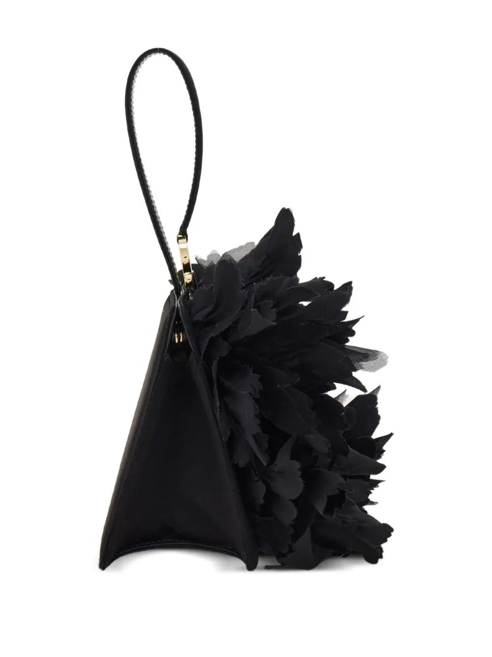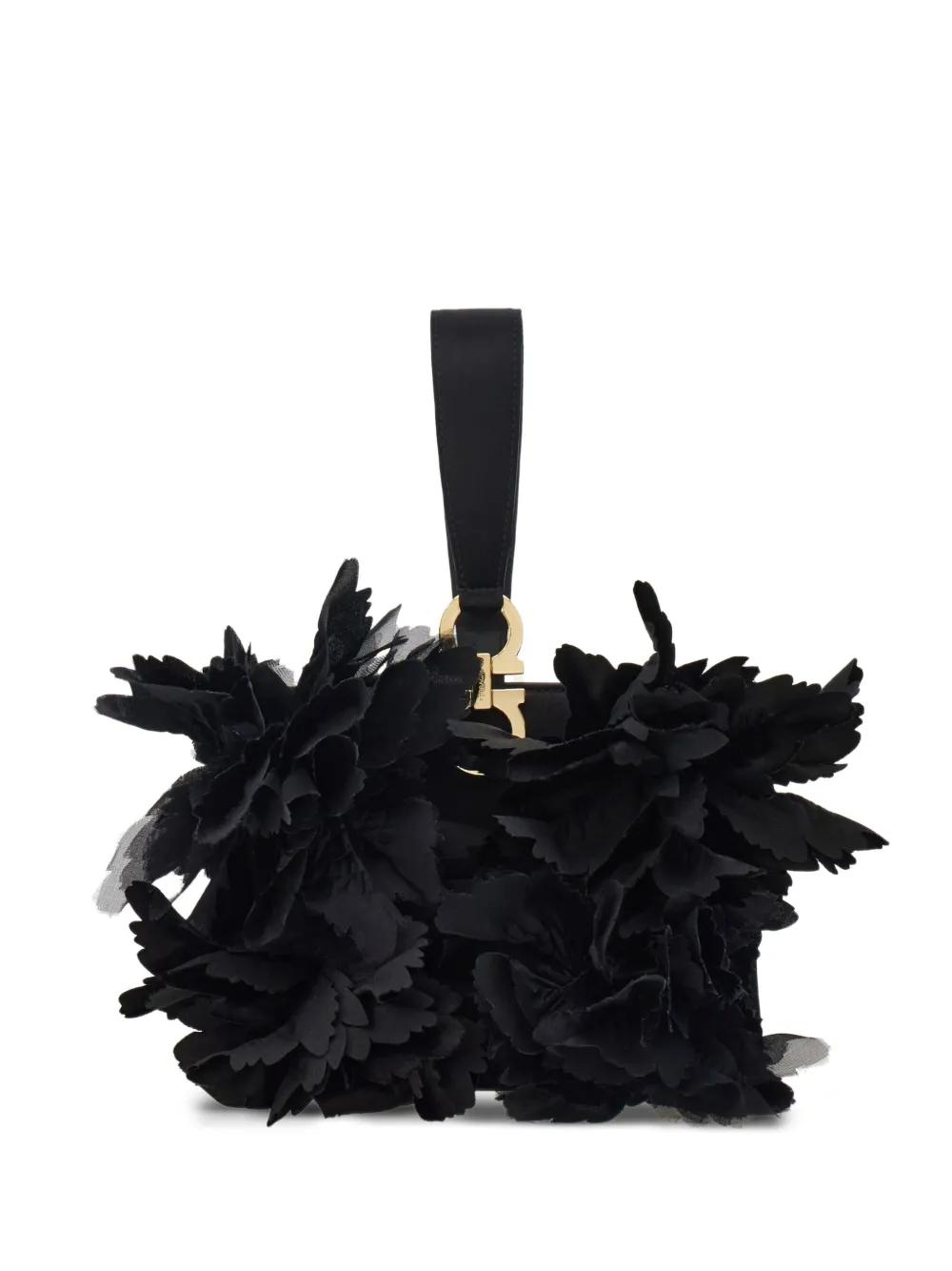 black three-dimensional floral effect gold-tone Gancini clasp top handle