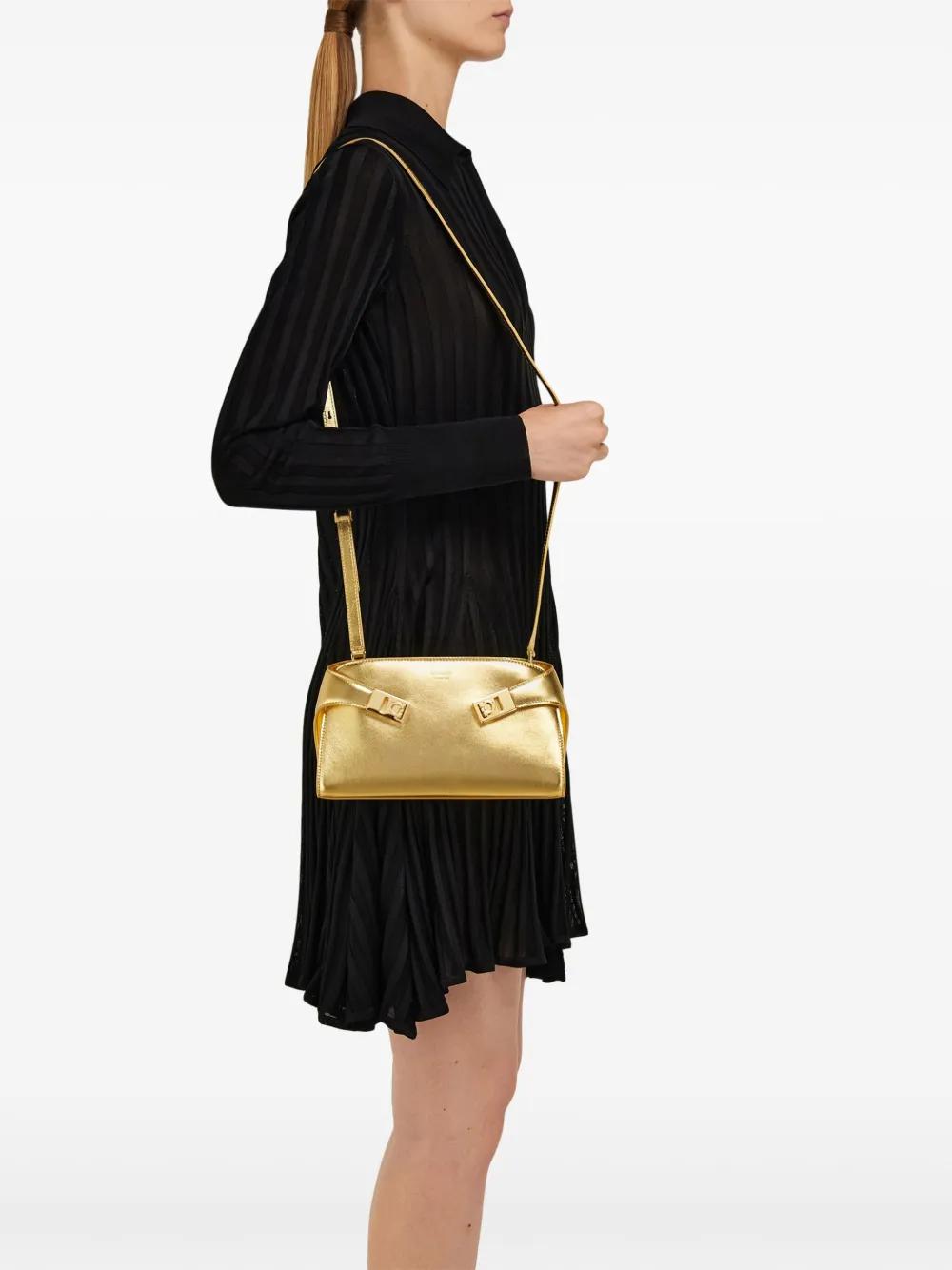 gold-tone leather metallic finish top zip fastening detachable shoulder strap debossed logo to the front Gancio slider clasps main compartment internal card slots