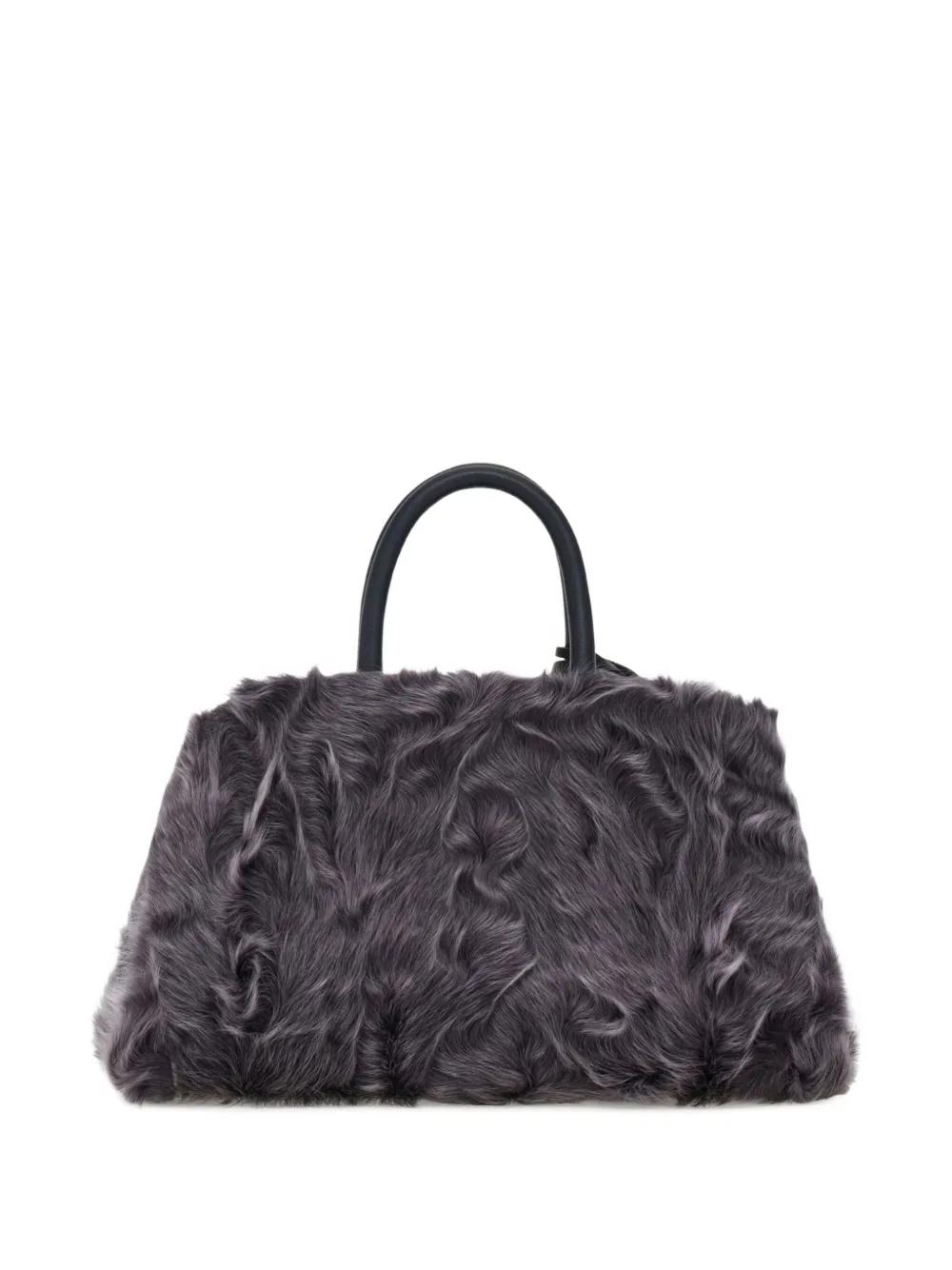 grey shearling finish top handle detachable shoulder strap keychain charm gold-tone hardware