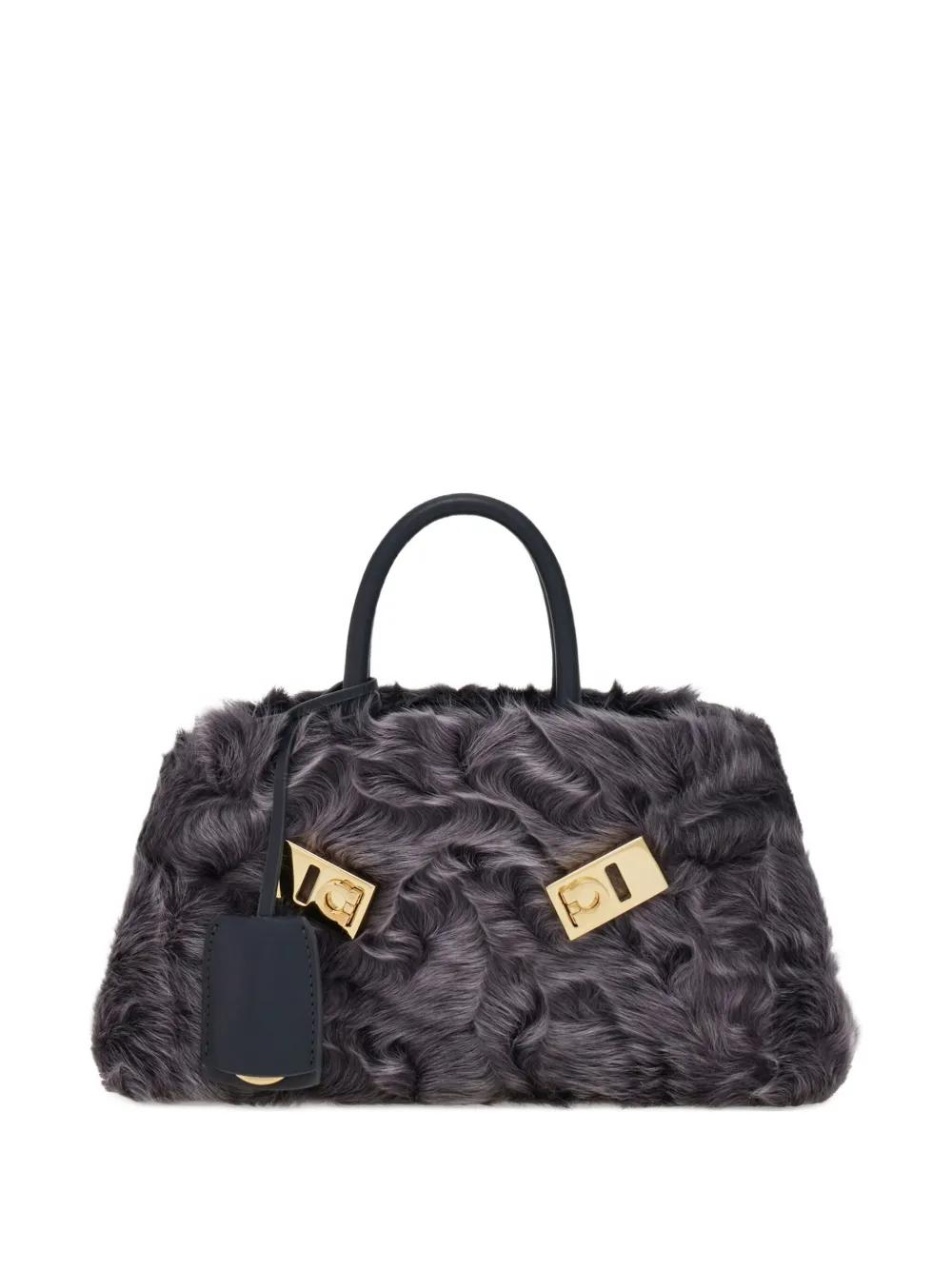 Ferragamo mini Hug shearling-front cross body bag - Grey