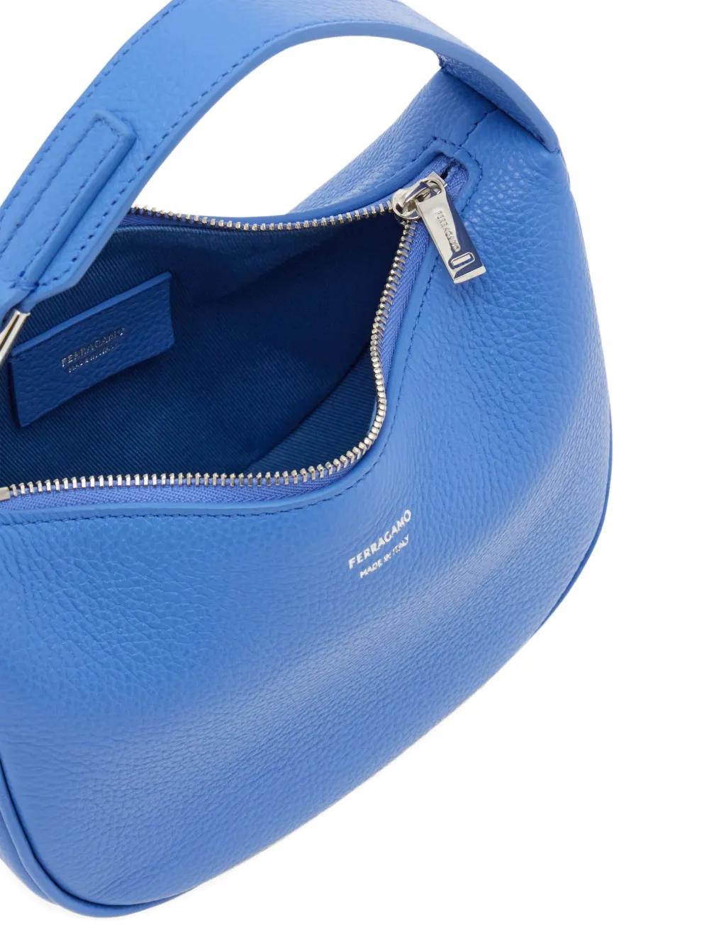 cornflower blue top zip fastening single top handle signature Gancini detail This piece comes complete with a protective dust bag.