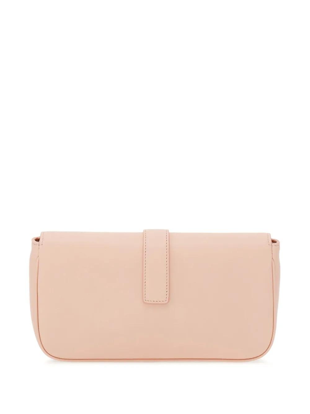 light pink calf leather Gancini buckle silver-tone hardware foldover top detachable chain-link shoulder strap main compartment multiple internal slip pockets