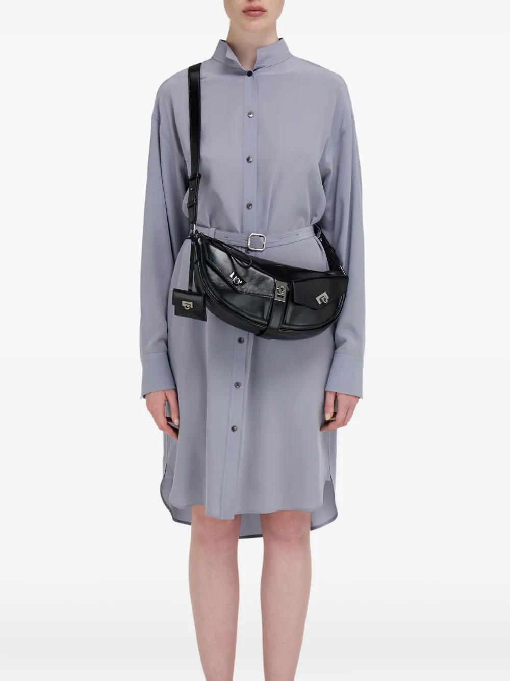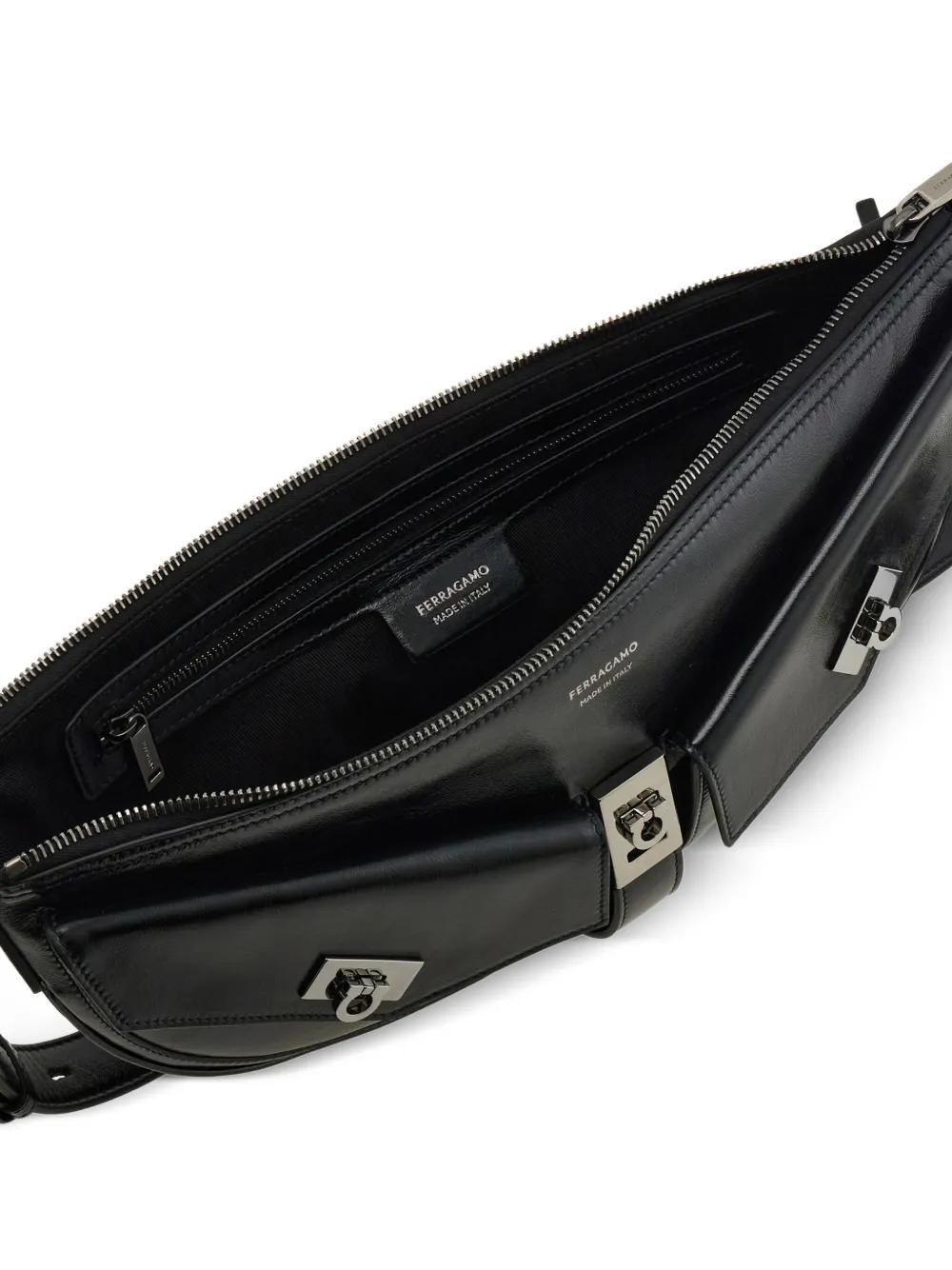black calfskin leather curved silhouette Gancio hardware zip fastening front pockets