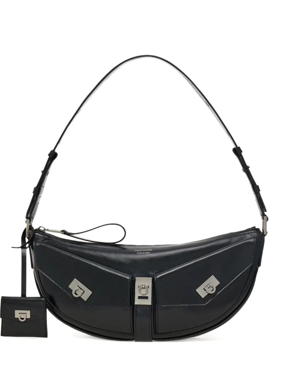 Ferragamo small gancio-embellished curved shoulder bag - Black