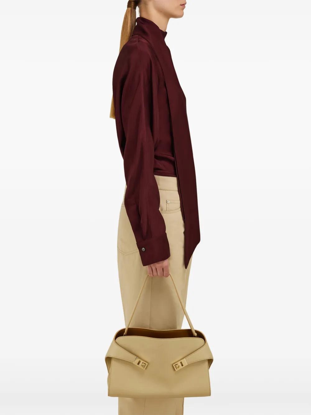 beige calf leather top zip fastening detachable shoulder strap logo stamp to the front Gancini flip-lock fastening gold-tone hardware partitioned compartment internal zip-fastening pocket internal card slots internal logo stamp