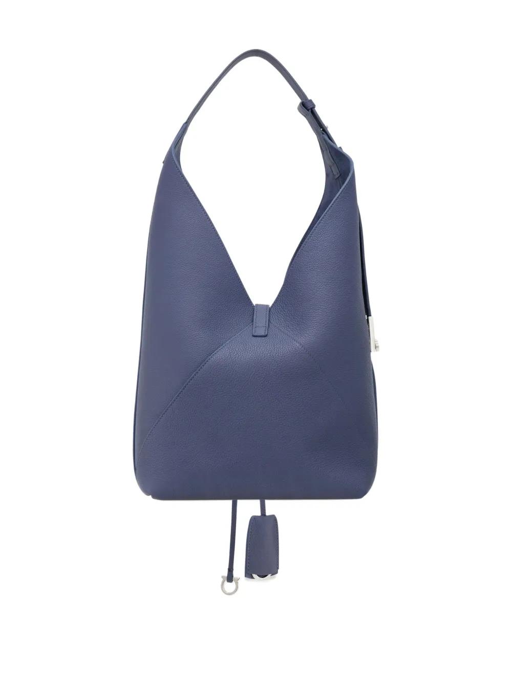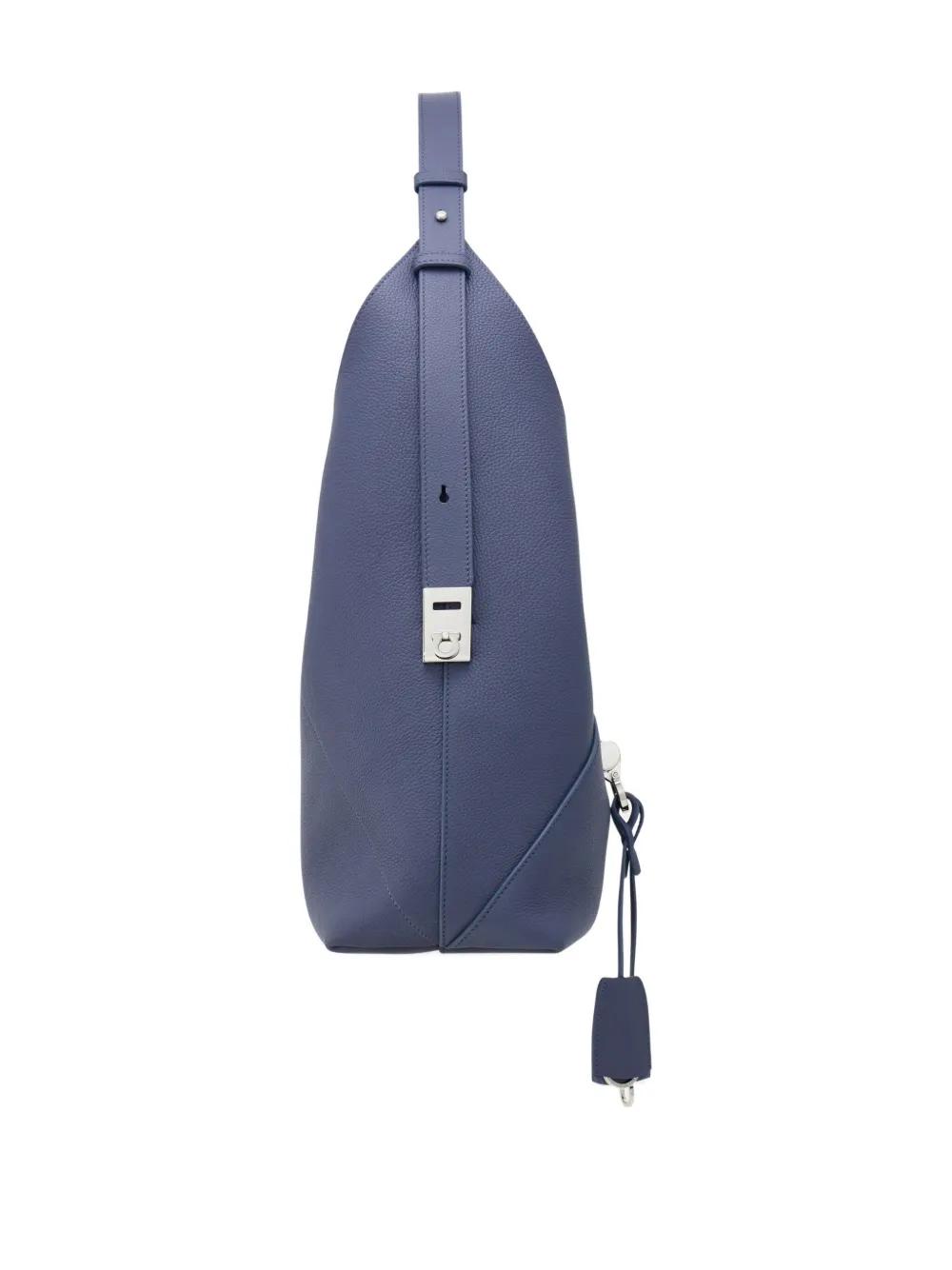 navy blue asymmetric design adjustable shoulder strap toggle fastening decorative drawstring detail