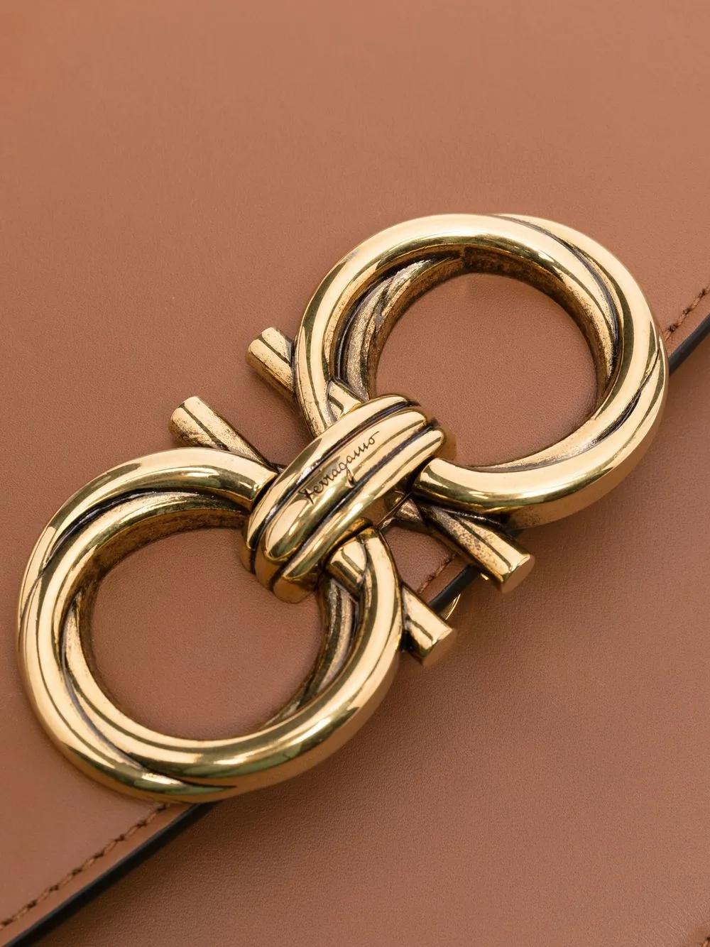 auburn brown calf leather logo plaque foldover top with magnetic fastening main compartment single shoulder strap