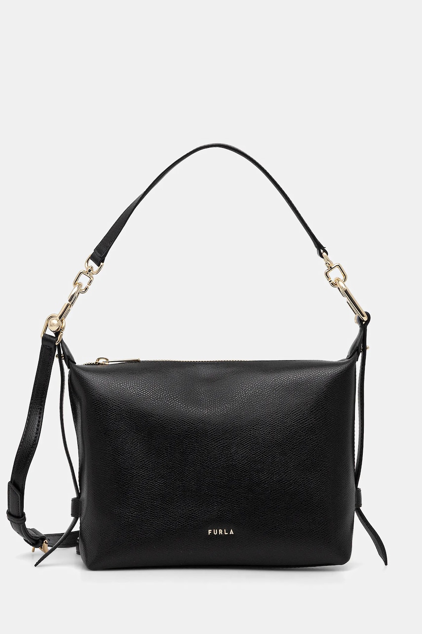 Furla torebka skórzana Tonie Mini Hobo kolor czarny WE00877 A.0023 O6000