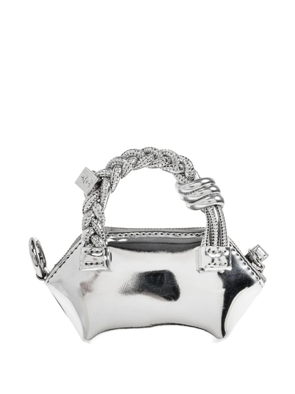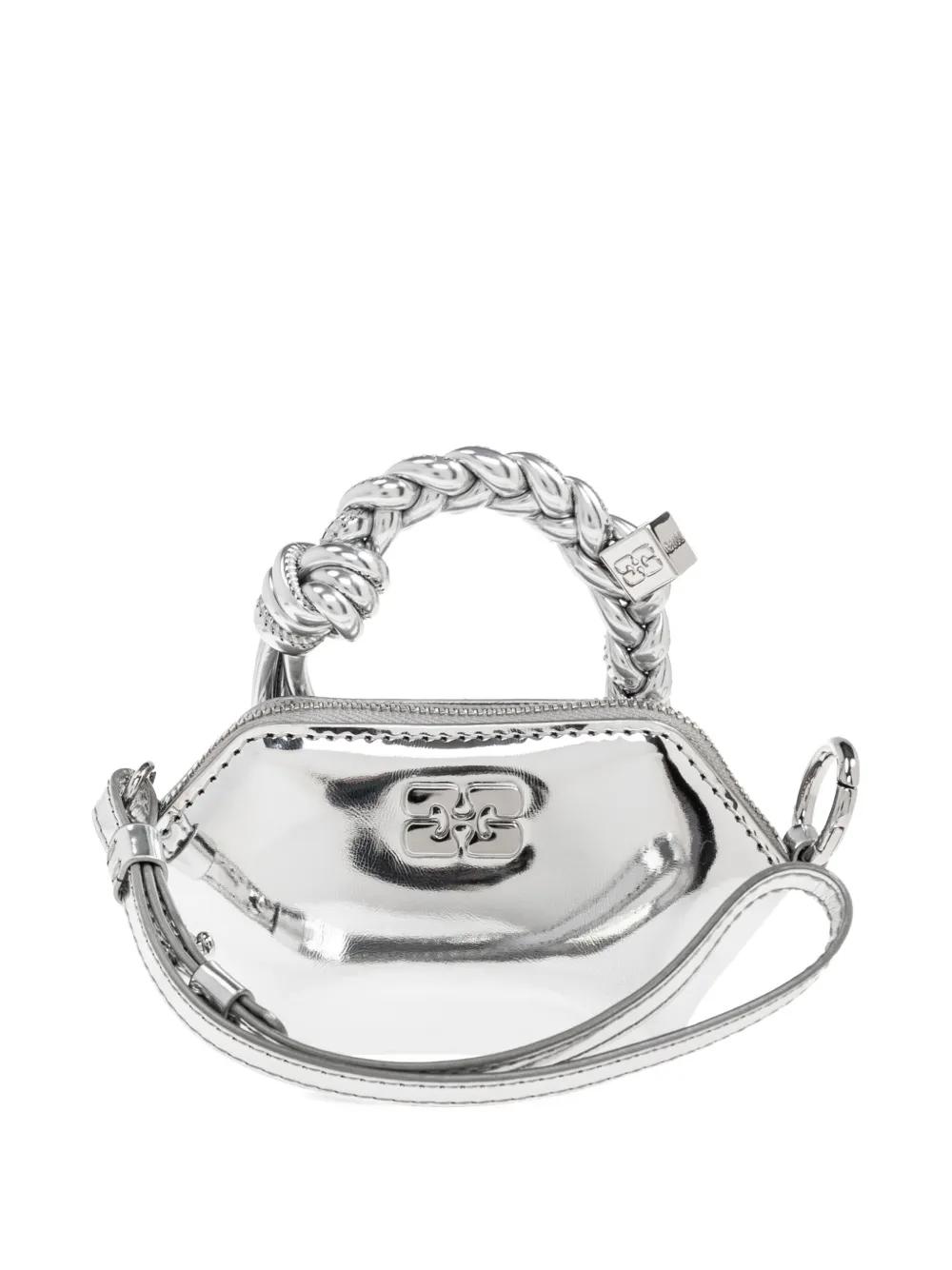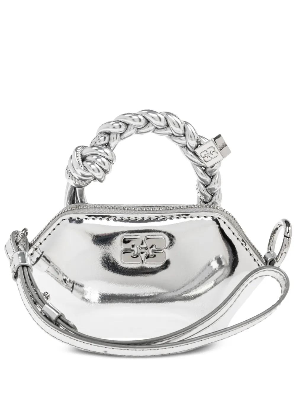 GANNI braided-handle metallic-effect pouch bag charm - Silver