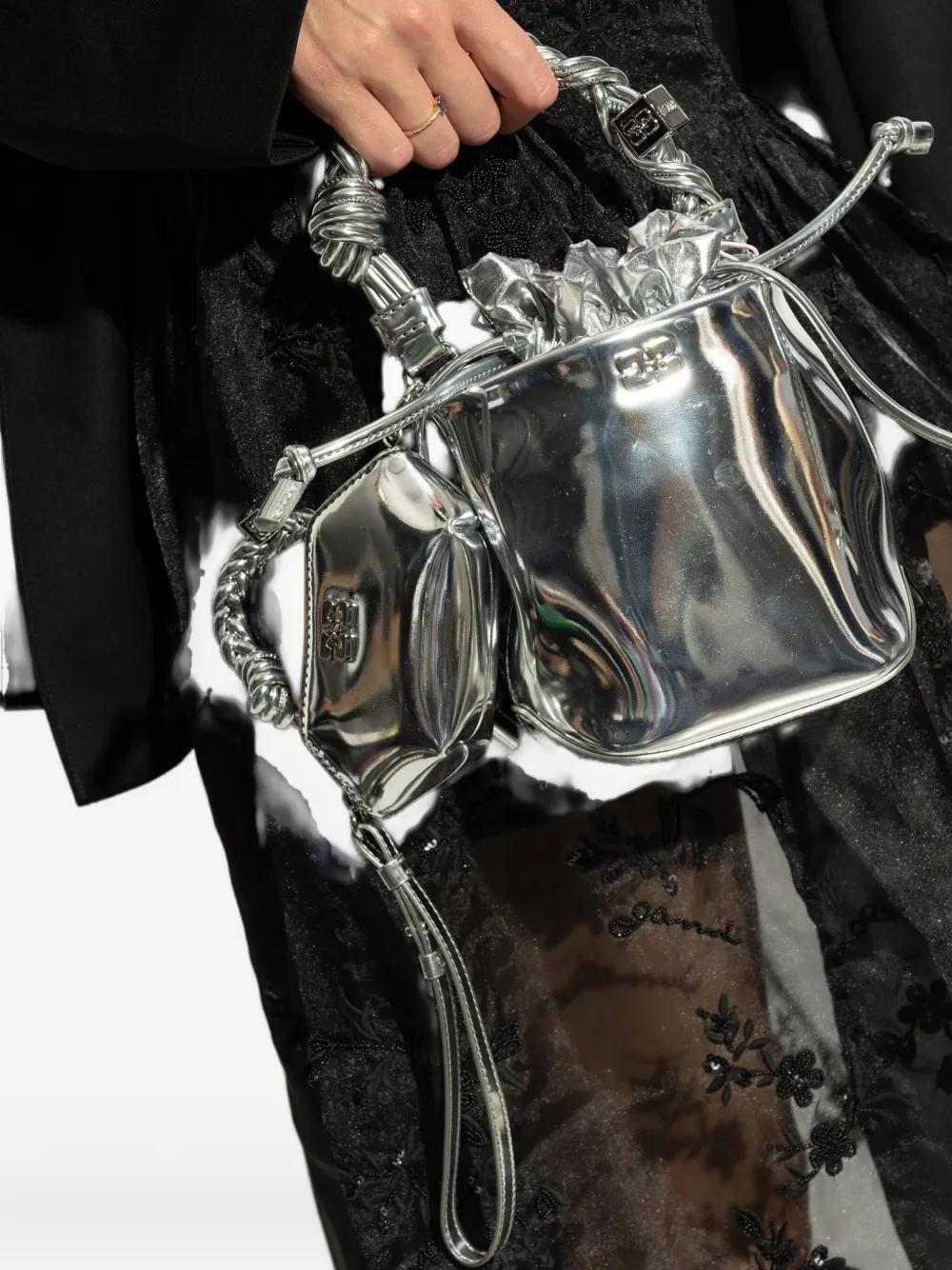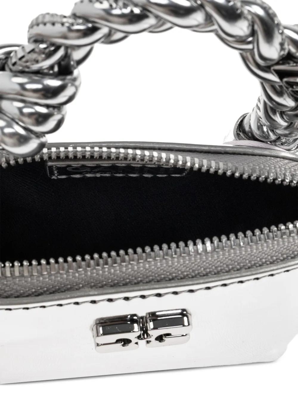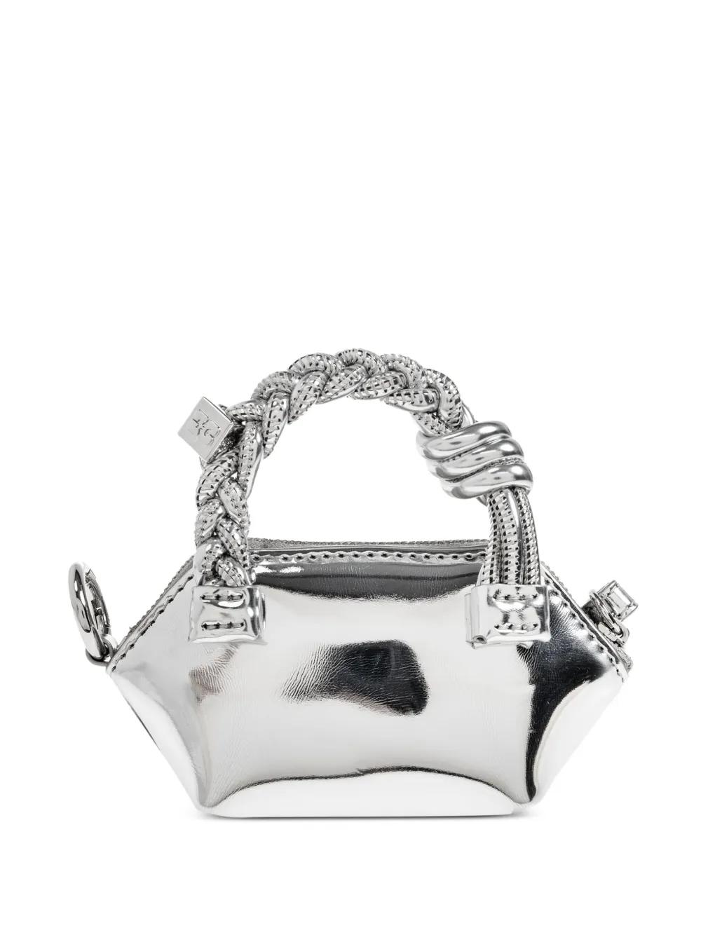 GANNI braided-handle metallic-effect pouch bag charm - Silver