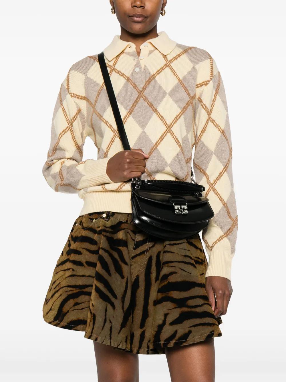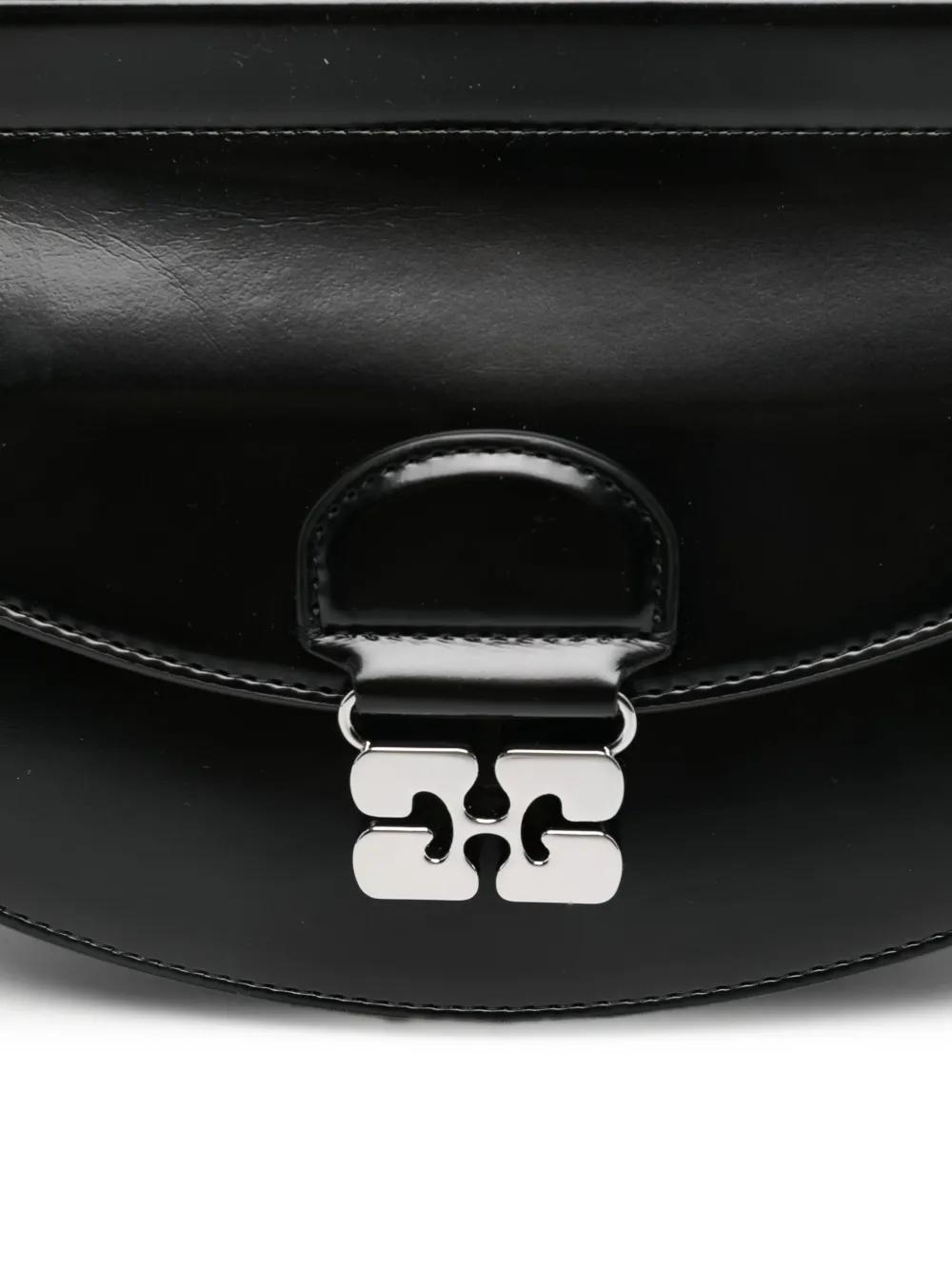 black curved body top handle clasp fastening detachable shoulder strap leather
