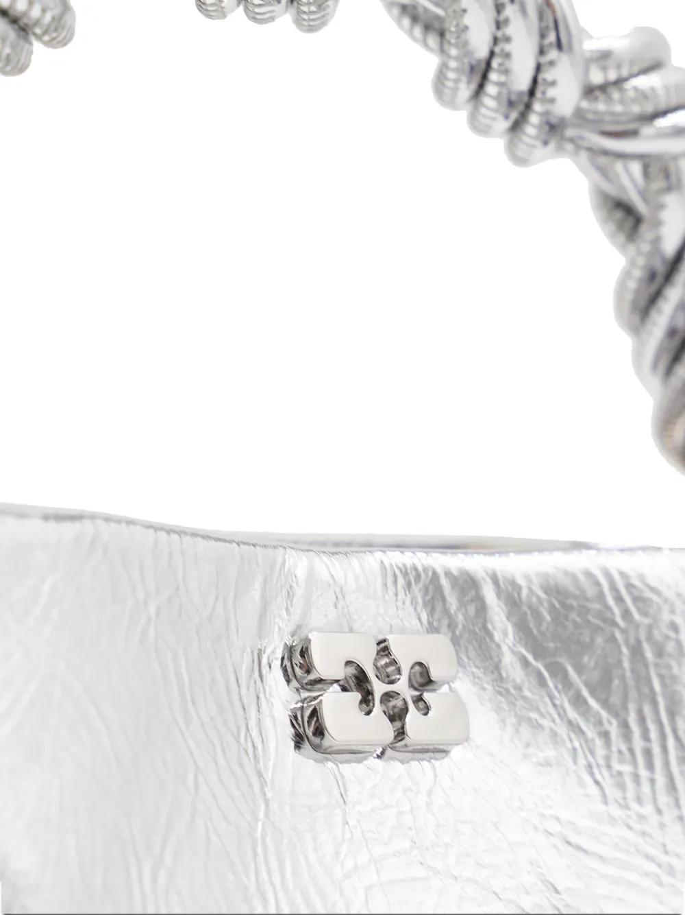 silver-tone concealed magnetic fastening single braided top handle adjustable detachable shoulder strap This piece comes complete with a protective dust bag.