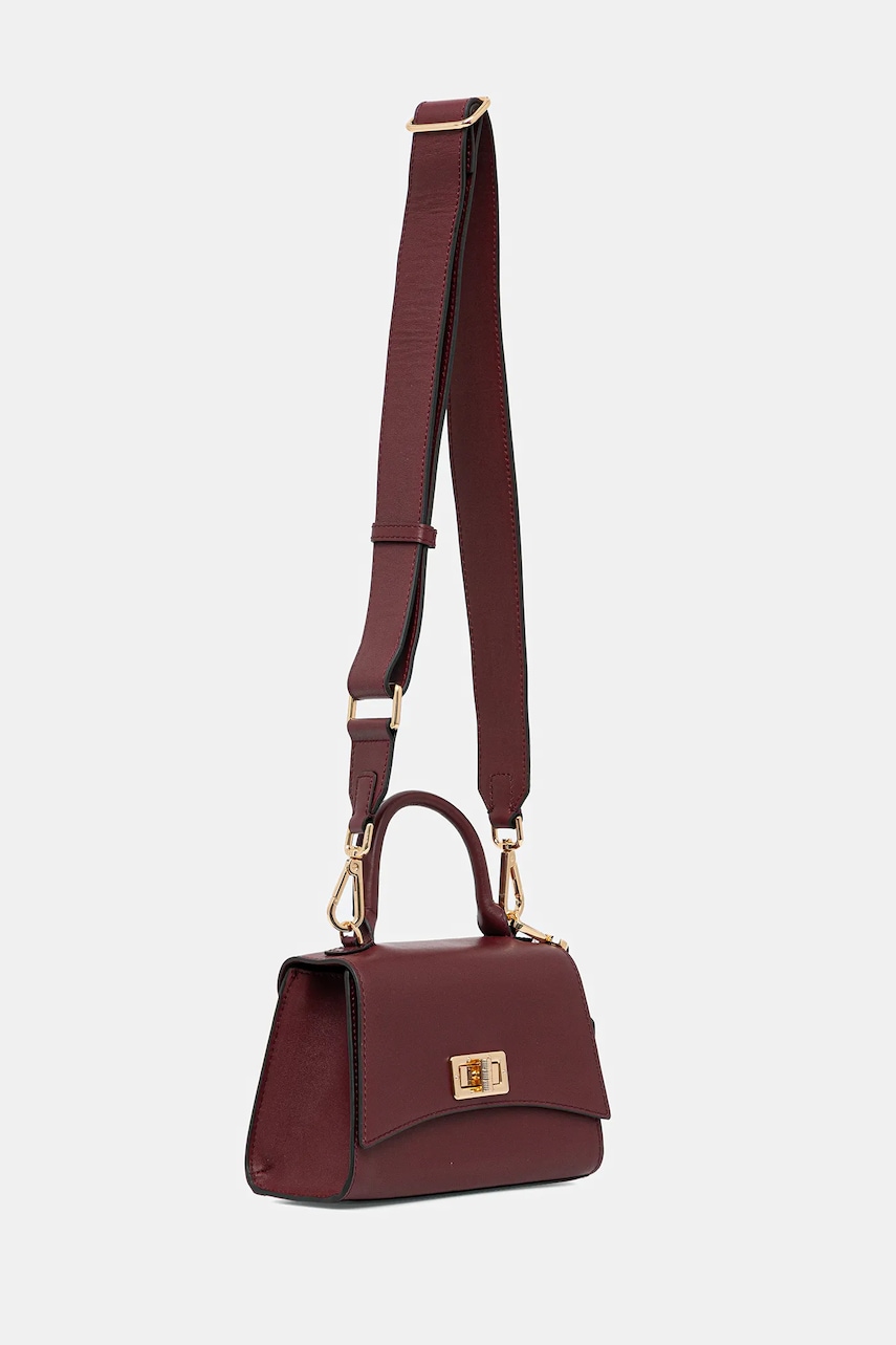 - Do modelu dołączony brelok. - Klapa z zapięciem typu twist-lock. - Usztywnione dno torebki pozwala zachować kształt produktu przez długi czas. - Posiada kieszonki wewnętrzne, w tym jedną zapinaną na suwak. - Torebka do noszenia w ręku lub na ramieniu. - Krótki uchwyt. - Odpinany, regulowany pasek umożliwia indywidualne dopasowanie. - Nie mieści formatu A4. - Model z podszewką. - Dołączony tekstylny worek zabezpiecza produkt przed kurzem. - Liczba zapinanych na suwak kieszeni wewnętrznych: 1. - Liczba wsuwanych kieszeni wewnętrznych: 1. - Głębokość: 9 cm. - Wysokość: 13,5 cm. - Szerokość u podstawy: 19,5 cm.