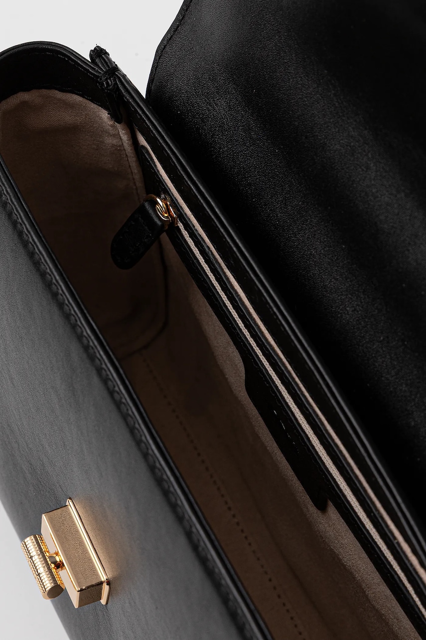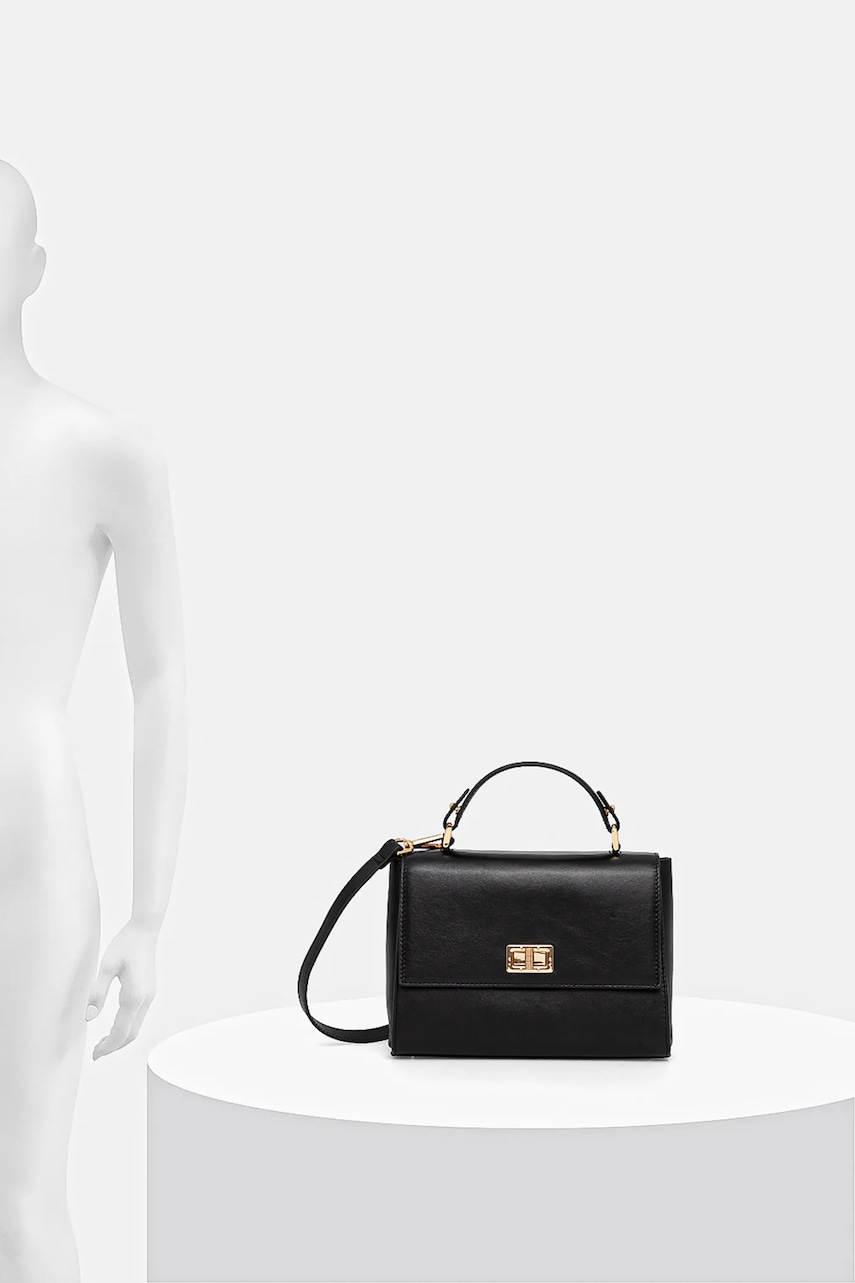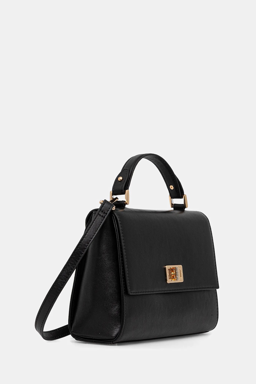 - Posiada odpinany uchwyt i odpinany pasek z regulacją. - Klapa z zapięciem typu twist-lock. - Posiada dwie kieszenie wewenętrzne: jedna wsuwana, druga zapinana na suwak. - Dołączony tekstylny worek zabezpiecza produkt przed kurzem. - Nie mieści formatu A4. - Model wyposażony w metalowe nóżki, które zabezpieczają spód torebki. - Długość minimalna paska: 120 cm. - Długość uchwytu: 25 cm. - Długość maksymalna paska: 129 cm. - Głębokość: 10 cm. - Wysokość: 20 cm. - Szerokość u podstawy: 25 cm.