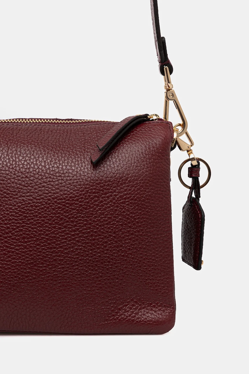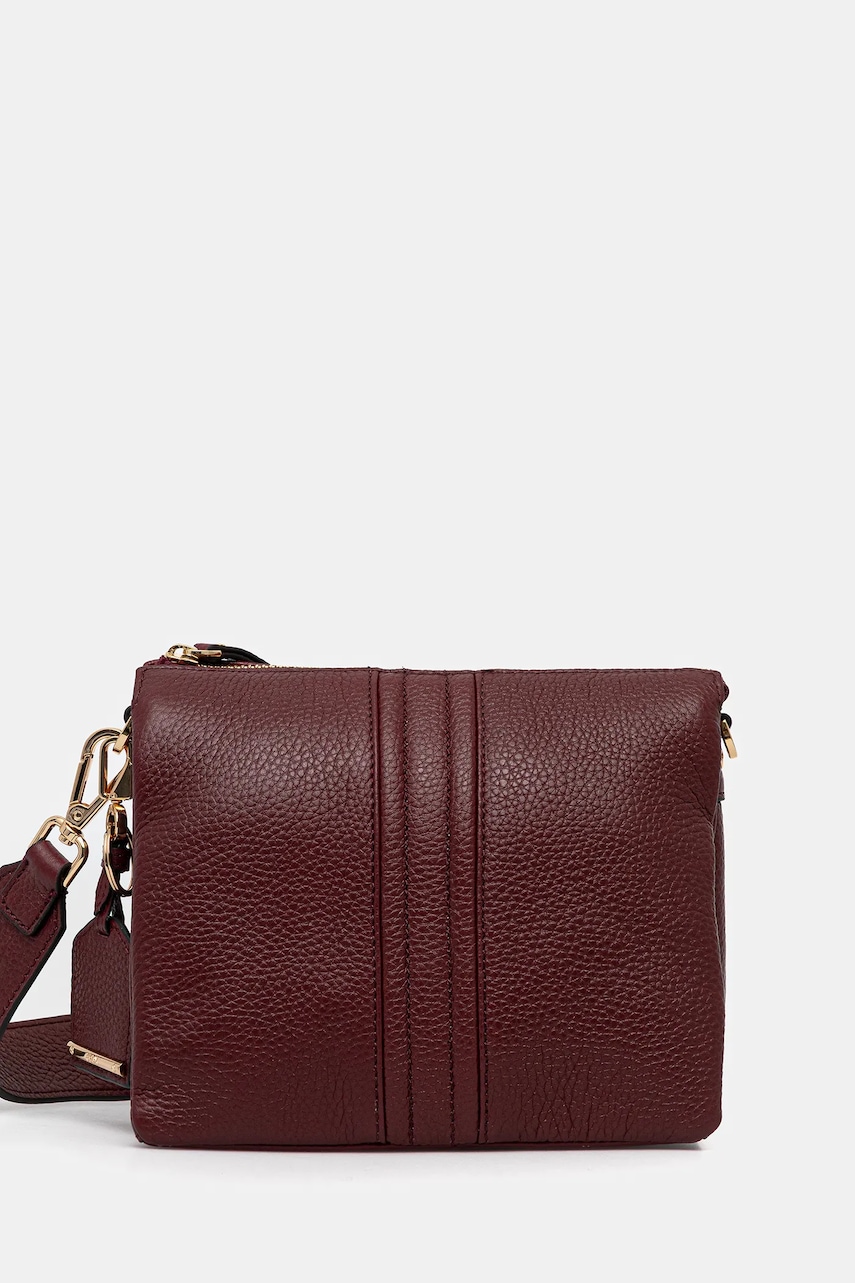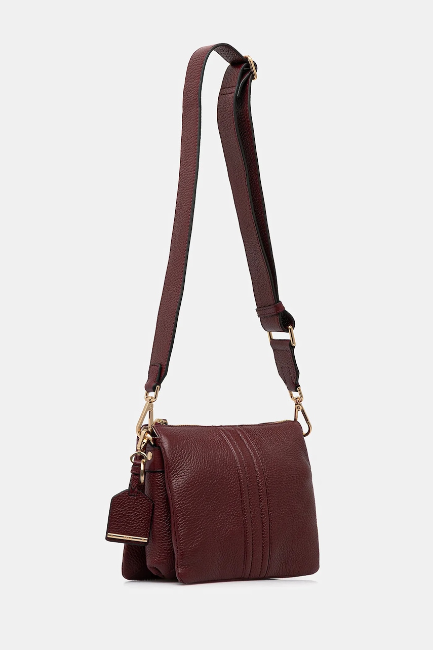 - Zapięcie na suwak. - Posiada trzy przegrody, w tym jedną zapinaną na suwak. - Kieszonka wewnętrzna zapinana na suwak. - Model z podszewką. - Nie mieści formatu A4. - Do modelu dołączony brelok. - Możliwość bezpiecznego przypięcia kluczy. - Odpinany pasek z regulacją. - Torebka do noszenia na ramieniu. - Dołączony tekstylny worek zabezpiecza produkt przed kurzem. - Długość minimalna paska: 73,5 cm. - Długość maksymalna paska: 120 cm. - Głębokość: 7,5 cm. - Wysokość: 18 cm. - Szerokość u podstawy: 22 cm.