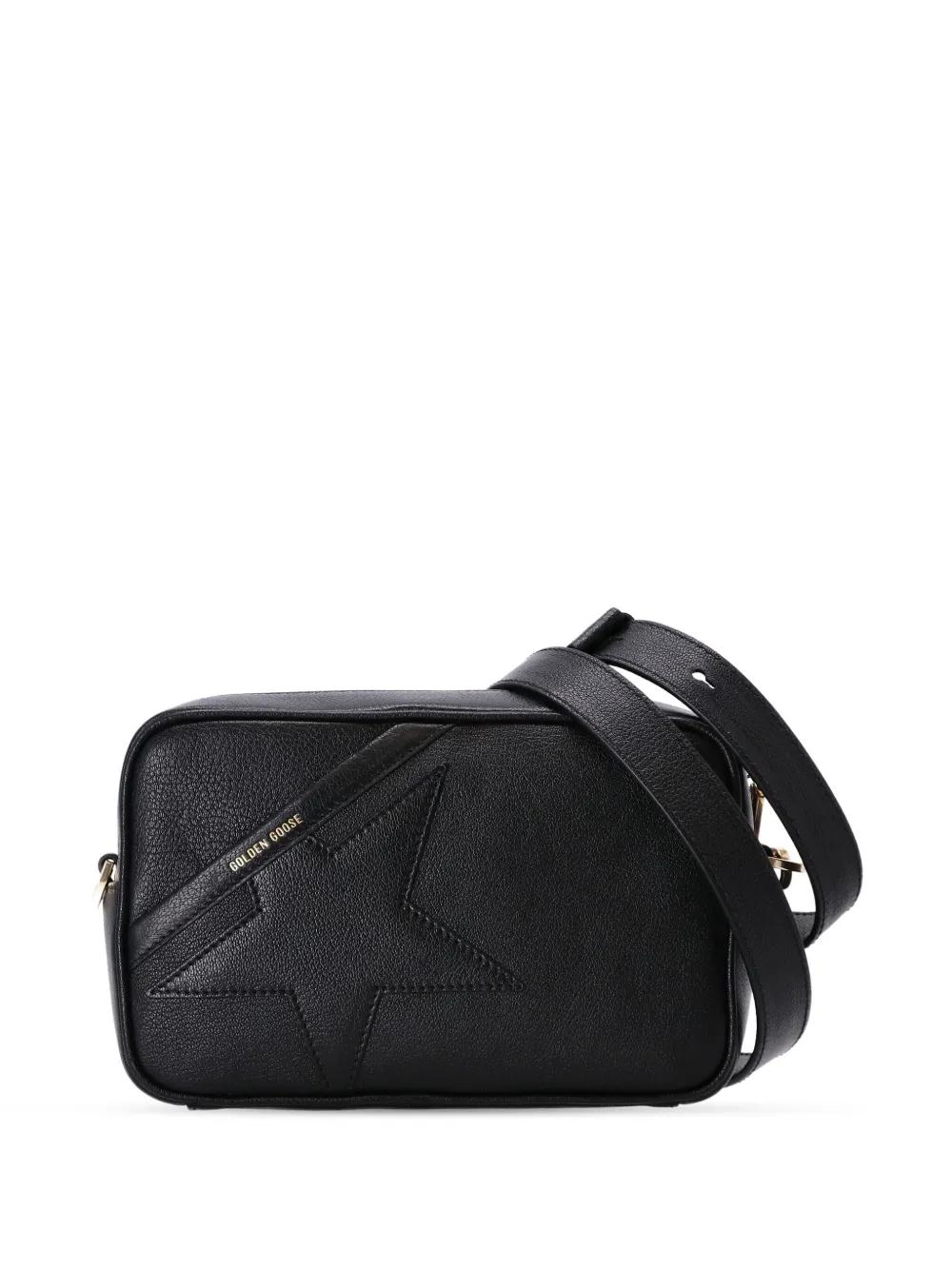 black leather grained texture signature star patch gold-tone hardware gold-tone logo lettering top zip fastening adjustable detachable shoulder strap slip pocket to the front internal slip pocket internal logo patch main compartment logo-jacquard lining