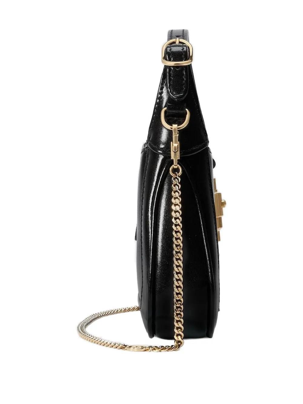 black calfskin leather gold-tone horsebit detail top handle chain strap