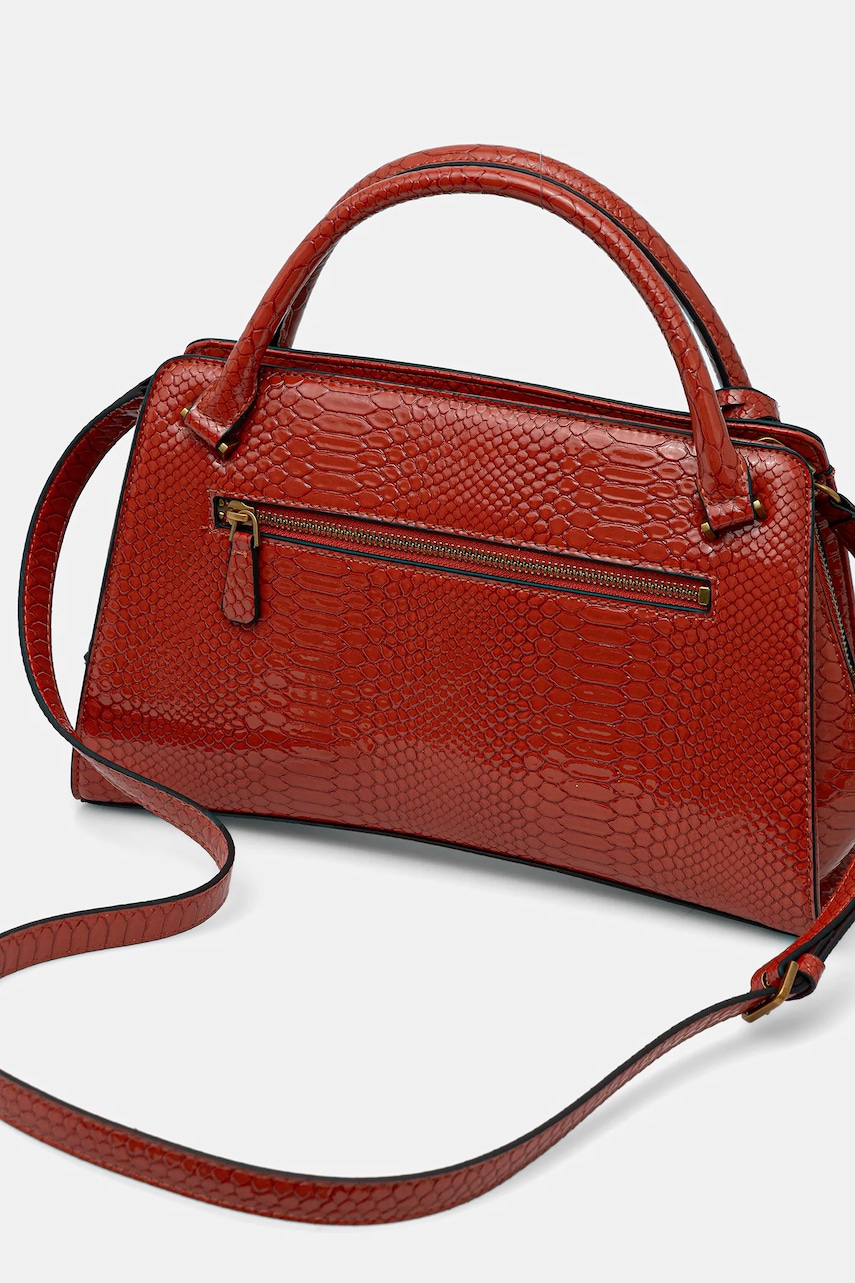 - Posiada trzy przegrody, w tym jedną zapinaną na suwak. - Z tyłu zapinana na suwak kieszeń, która ułatwia bezpieczne przechowywanie drobiazgów. - Posiada kieszonki wewnętrzne, w tym jedną zapinaną na suwak. - Usztywnione dno torebki pozwala zachować kształt produktu przez długi czas. - Model wyposażony w metalowe nóżki, które zabezpieczają spód torebki. - Torebka do noszenia w ręku lub na ramieniu. - Krótkie uchwyty. - Odpinany, regulowany pasek umożliwia indywidualne dopasowanie. - Nie mieści formatu A4. - Model z podszewką. - Dołączony tekstylny worek zabezpiecza produkt przed kurzem. - Liczba zapinanych na suwak kieszeni wewnętrznych: 1. - Liczba wsuwanych kieszeni wewnętrznych: 2. - Głębokość: 11 cm. - Wysokość: 19,5 cm. - Szerokość u podstawy: 32,5 cm.