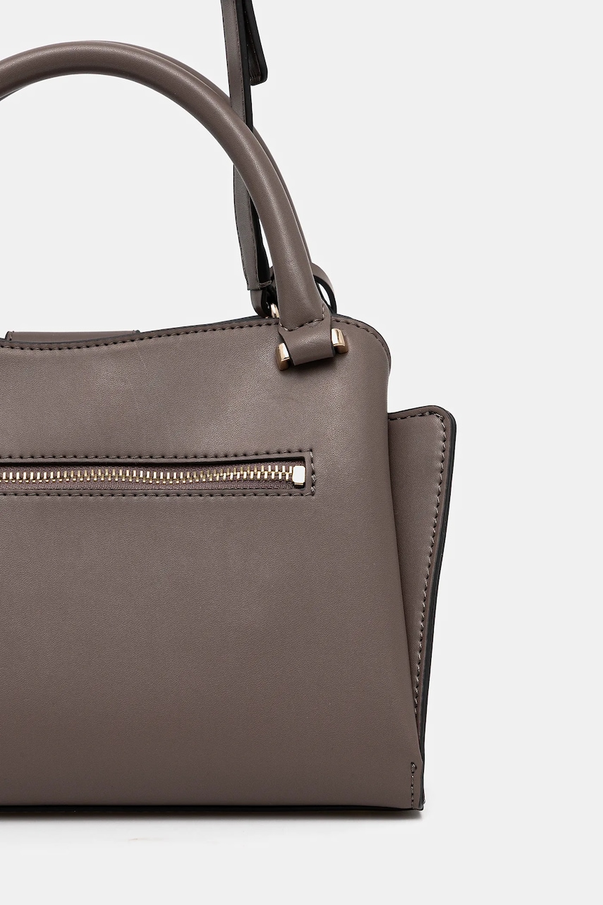 - Zapięcie na suwak i magnes. - Model z podszewką. - Nie mieści formatu A4. - Z tyłu zapinana na suwak kieszeń, która ułatwia bezpieczne przechowywanie telefonu lub innych drobiazgów. - Trzy kieszonki wewnętrzne: jedna zapinana na suwak, dwie wsuwane. - Torebka do noszenia w ręku lub na ramieniu. - Krótkie uchwyty dla komfortowego noszenia w dłoni. - Dopinany dłuższy pasek z regulacją. - Dołączony tekstylny worek zabezpiecza produkt przed kurzem. - Długość minimalna paska: 91 cm. - Długość maksymalna paska: 112 cm. - Długość uchwytów: 34 cm. - Głębokość: 13 cm. - Wysokość: 17,5 cm. - Szerokość u podstawy: 26 cm.