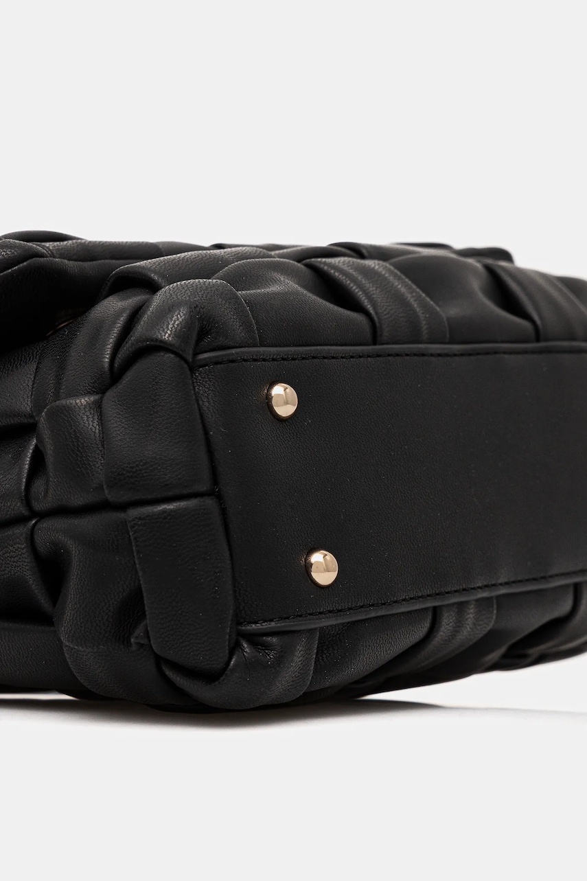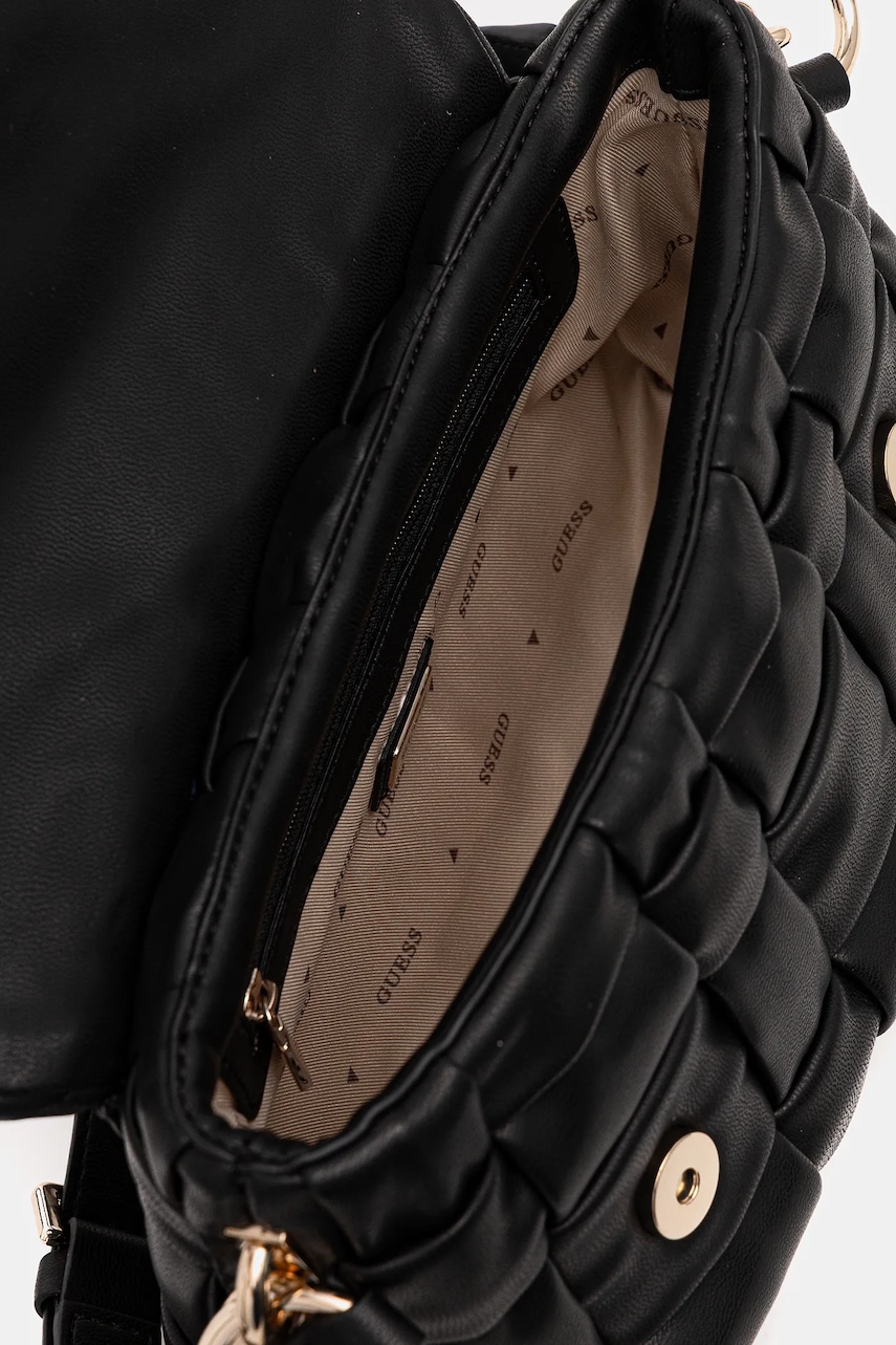 - Klapa zapinana na zatrzask. - Mieści format A4. - Posiada kieszonkę wewnętrzną zapinaną na suwak i przegrody na karty. - Liczba przegródek na karty: 6. - Model z podszewką. - Posiada odpinany uchwyt i odpinany pasek z regulacją. - Model wyposażony w metalowe nóżki, które zabezpieczają spód torebki. - Dołączony tekstylny worek zabezpiecza produkt przed kurzem. - Długość minimalna paska: 110 cm. - Długość maksymalna paska: 130 cm. - Maksymalna długość uchwytu: 66 cm. - Minimalna długość uchwytu: 57 cm. - Głębokość: 9 cm. - Wysokość: 16 cm. - Szerokość u podstawy: 27 cm.