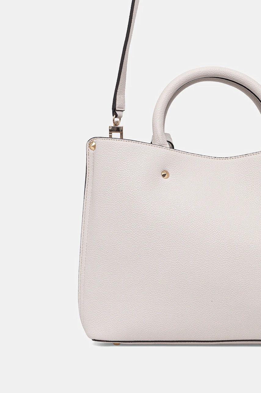 - Nie mieści formatu A4. - Dołączony tekstylny worek zabezpiecza produkt przed kurzem. - Posiada trzy komory: jedna zapinana na suwak, dwie zapinane na magnes. - Krótkie uchwyty. - Odpinany pasek z regulacją. - Model wyposażony w metalowe nóżki, które zabezpieczają spód torebki. - Trzy kieszonki wewnętrzne: jedna zapinana na suwak, dwie wsuwane. - Głębokość: 10.3 cm. - Wysokość: 24 cm. - Szerokość u podstawy: 30 cm. - Długość uchwytów: 32 cm. - Długość maksymalna paska: 80 cm. - Długość minimalna paska: 98 cm.