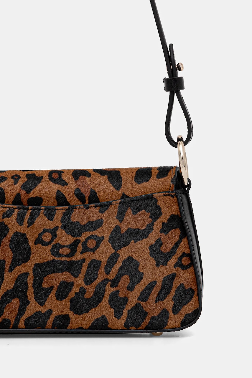 - Klapa zapinana na zatrzask. - Nie mieści formatu A4. - Model z podszewką. - Z tyłu wsuwana kieszeń, która ułatwia bezpieczne przechowywanie drobiazgów. - Model wyposażony w metalowe nóżki, które zabezpieczają spód torebki. - Regulowany uchwyt dla komfortowego noszenia w dłoni. - Minimalna długość uchwytu: 66 cm. - Maksymalna długość uchwytu: 69 cm. - Głębokość: 7 cm. - Wysokość: 10 cm. - Szerokość u podstawy: 23 cm.