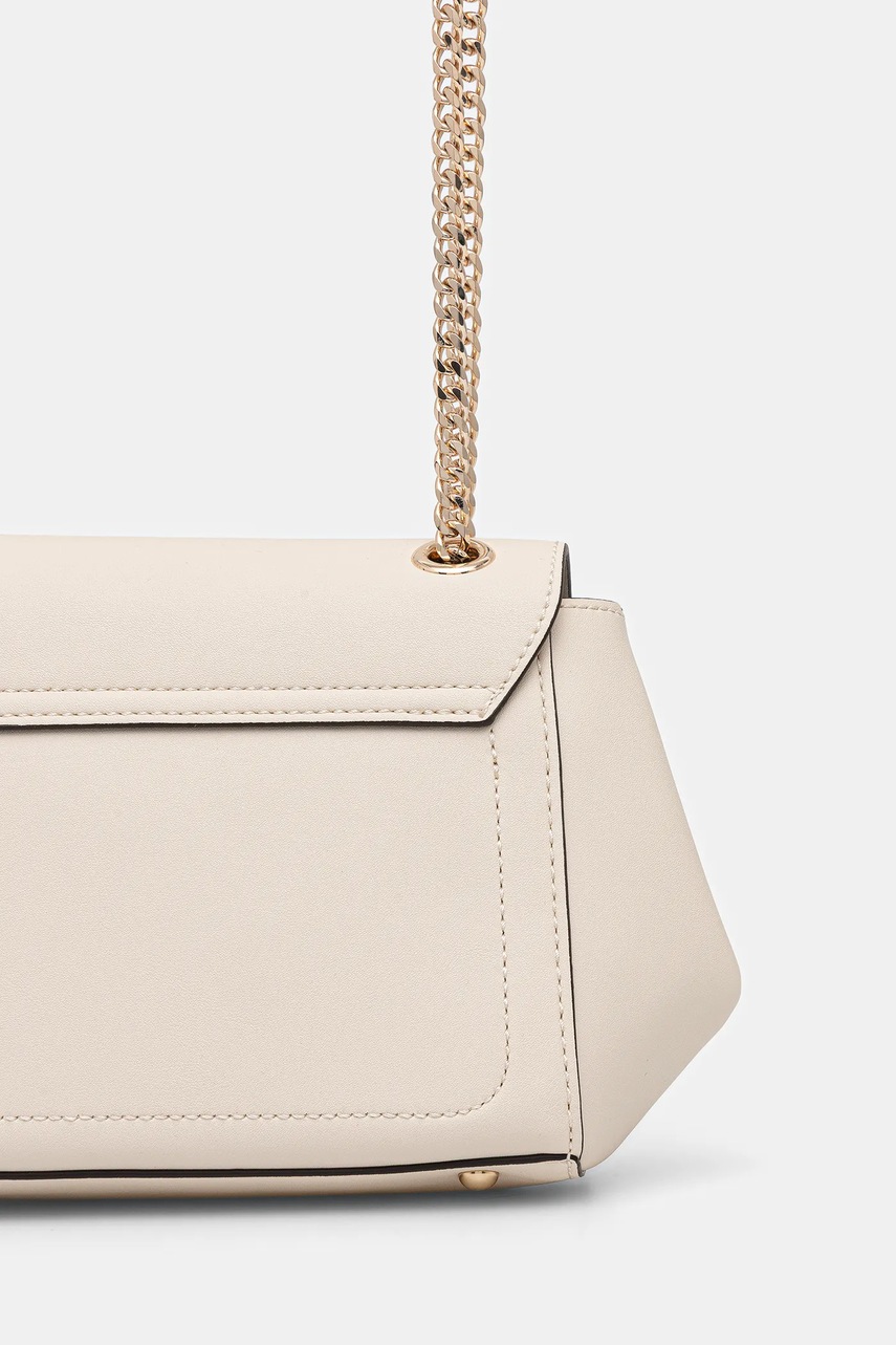 - Zapięcie na magnes. - Posiada trzy przegrody, w tym jedną zapinaną na suwak. - Wsuwana kieszonka wewnętrzna. - Nieodpinany pasek bez regulacji. - Nie mieści formatu A4. - Dołączony tekstylny worek zabezpiecza produkt przed kurzem. - Głębokość: 10 cm. - Wysokość: 17 cm. - Szerokość u podstawy: 22 cm.