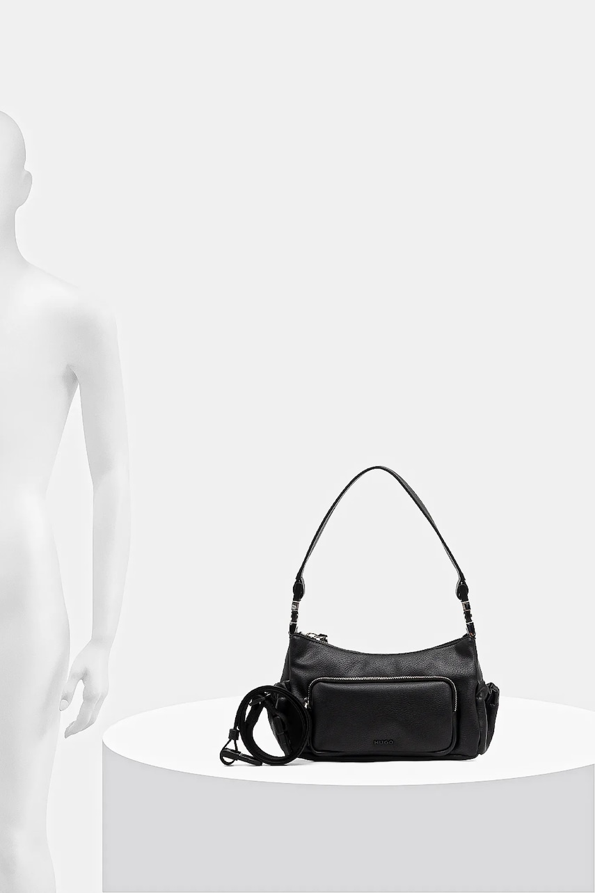- Produkty z linii WE ACT są wykonywane co najmniej w 60% z materiałów pozyskiwanych w bardziej ekologiczny sposób. - Zapięcie na suwak. - Kieszeń z przodu. - Boczne kieszenie. - Wsuwana kieszeń wewnętrzna. - Model z podszewką. - Nie mieści formatu A4. - Posiada uchwyt i odpinany pasek z regulacją. - Głębokość: 7 cm. - Wysokość: 15 cm. - Szerokość u podstawy: 24 cm. - Długość uchwytu: 48 cm. - Długość minimalna paska: 70 cm. - Długość maksymalna paska: 125 cm.
