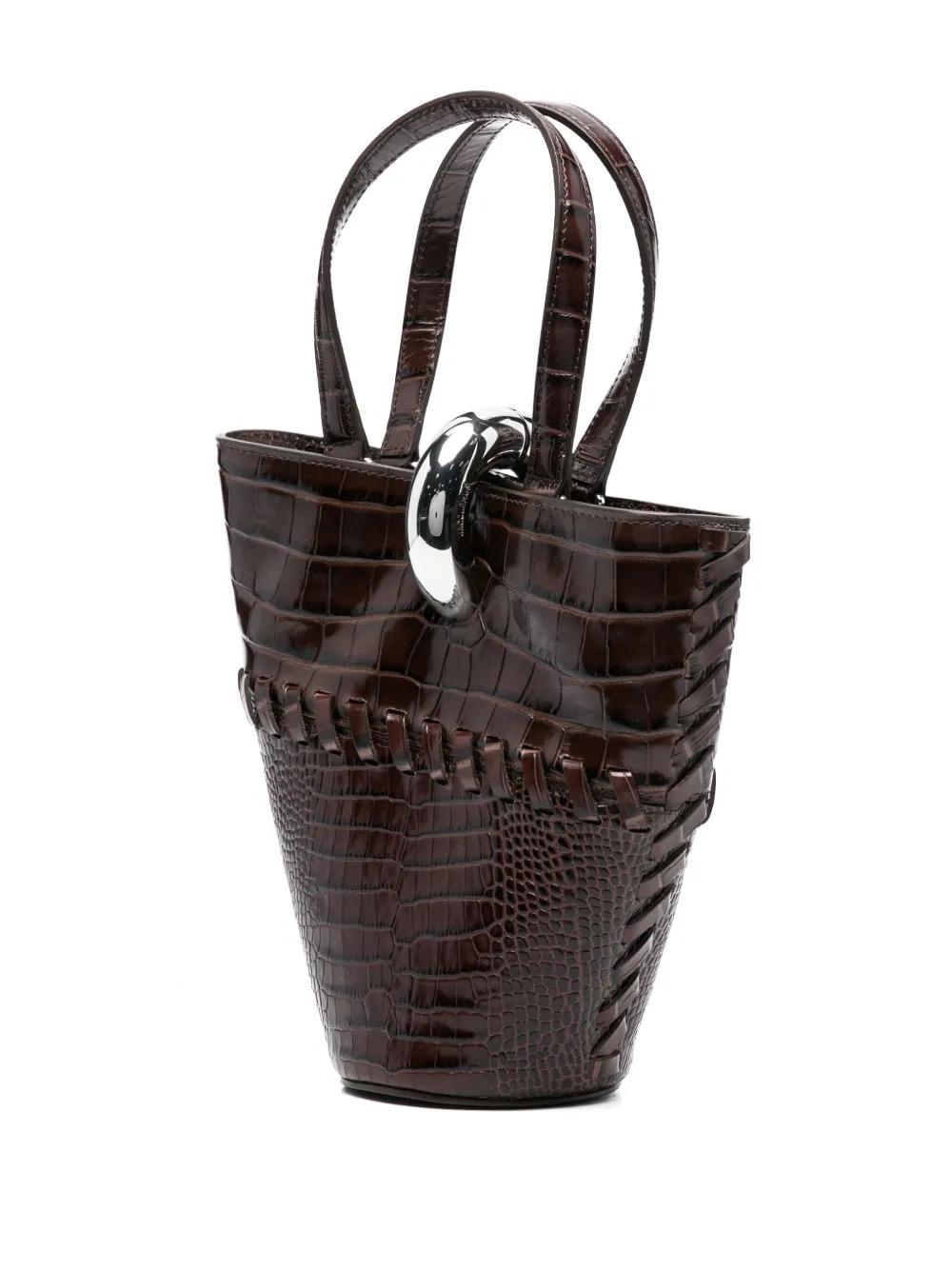 chocolate brown magnetic fastening two flat top handles detachable shoulder strap This piece comes complete with a protective dust bag.