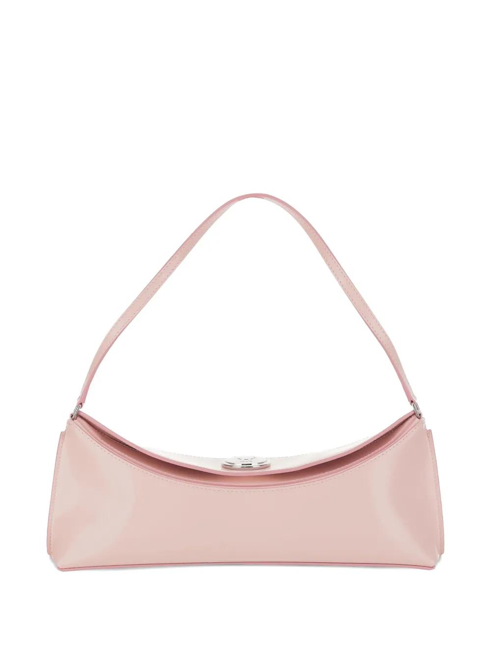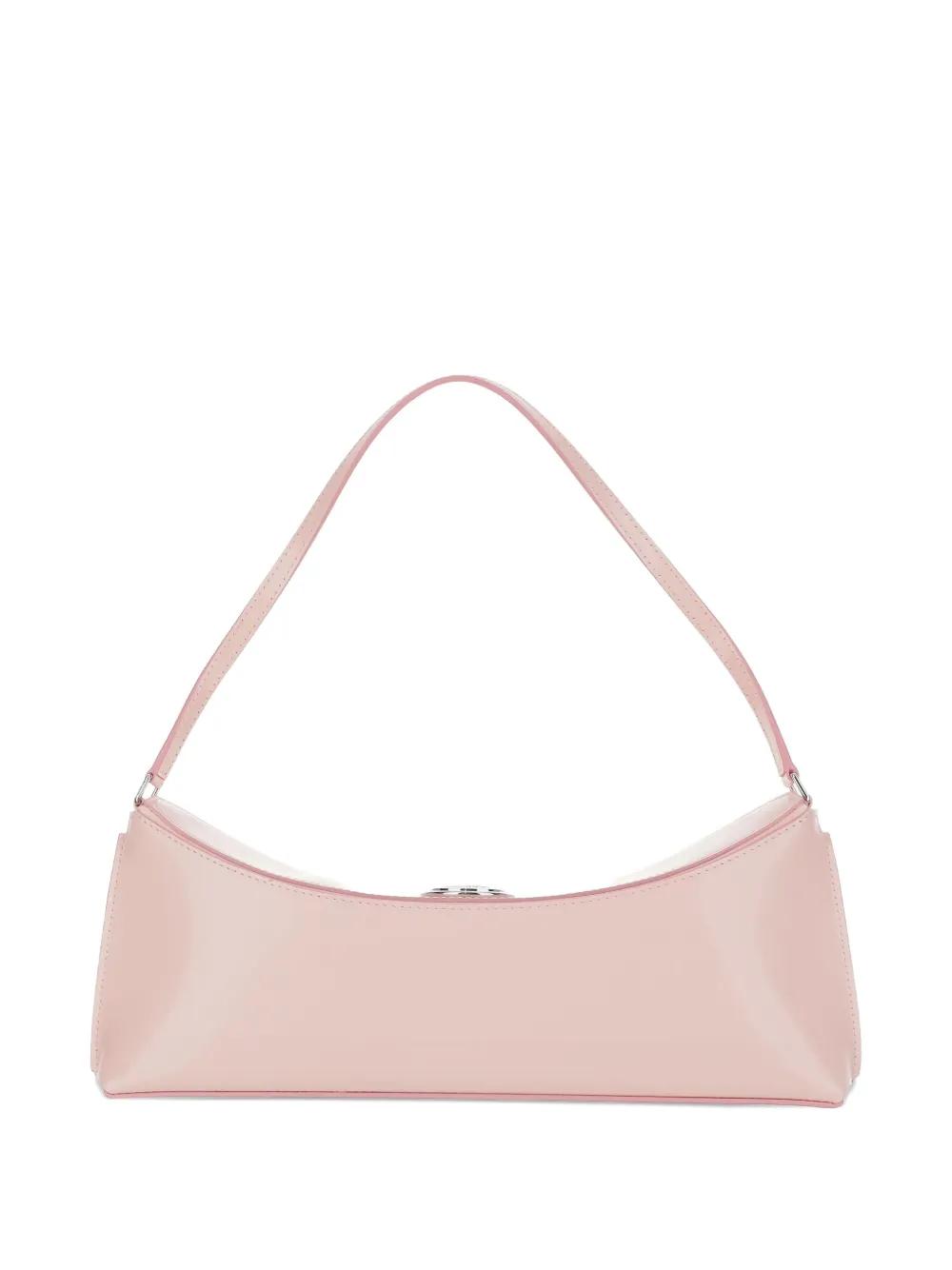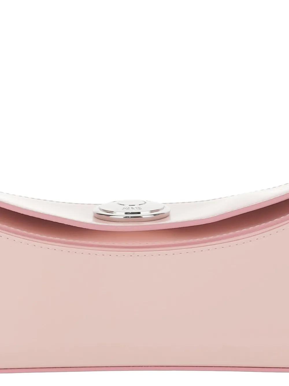pink leather construction magnetic flap closure engraved snap closure internal card pocket