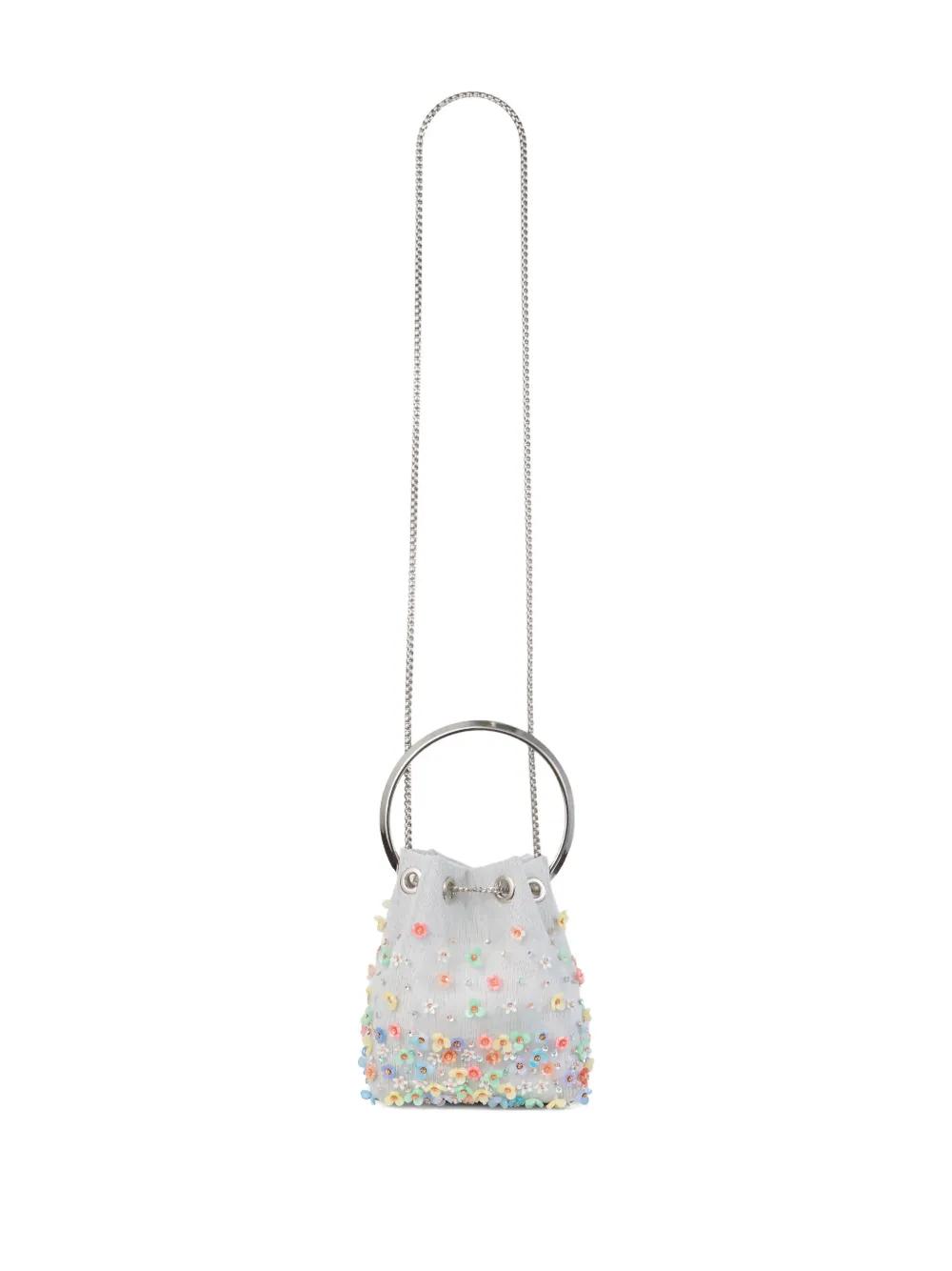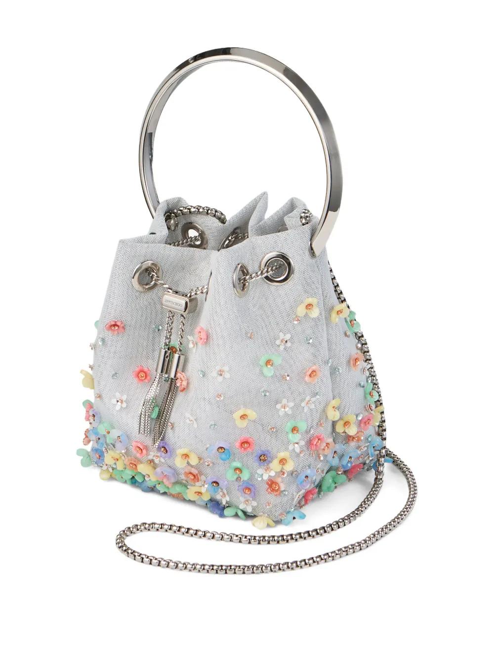 Jimmy Choo Bon Bon floral-embellished bucket bag - Silver