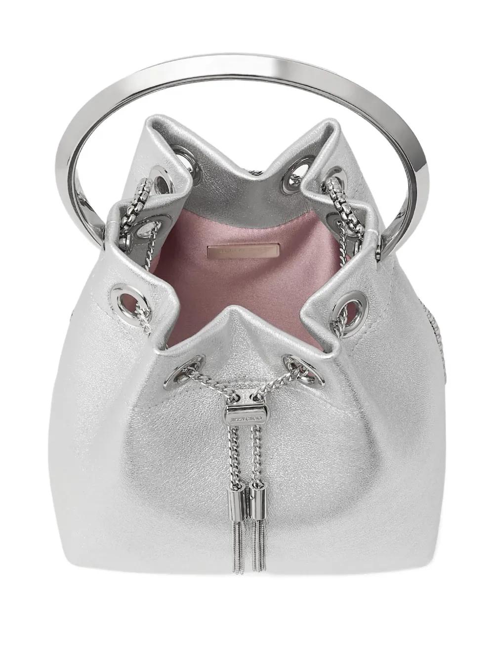 silver-tone top drawstring fastening single metallic top handle detachable chain-link shoulder strap bucket body Wardrobe Icon