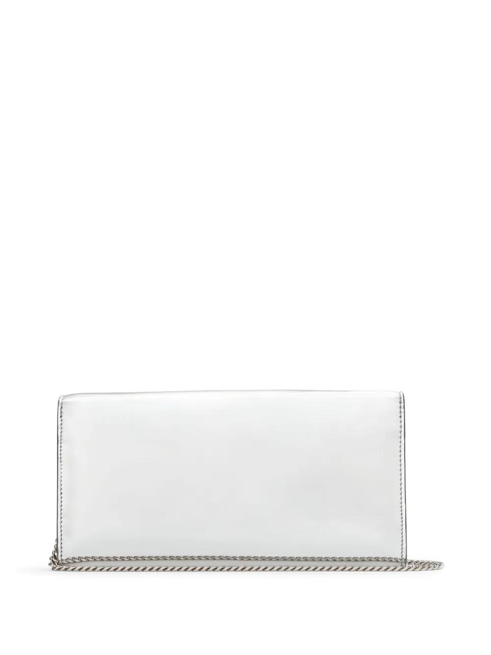 silver-tone leather metallic finish silver-tone hardware engraved logo foldover top with magnetic fastening detachable chain-link shoulder strap internal card slots internal logo stamp Wardrobe Icon