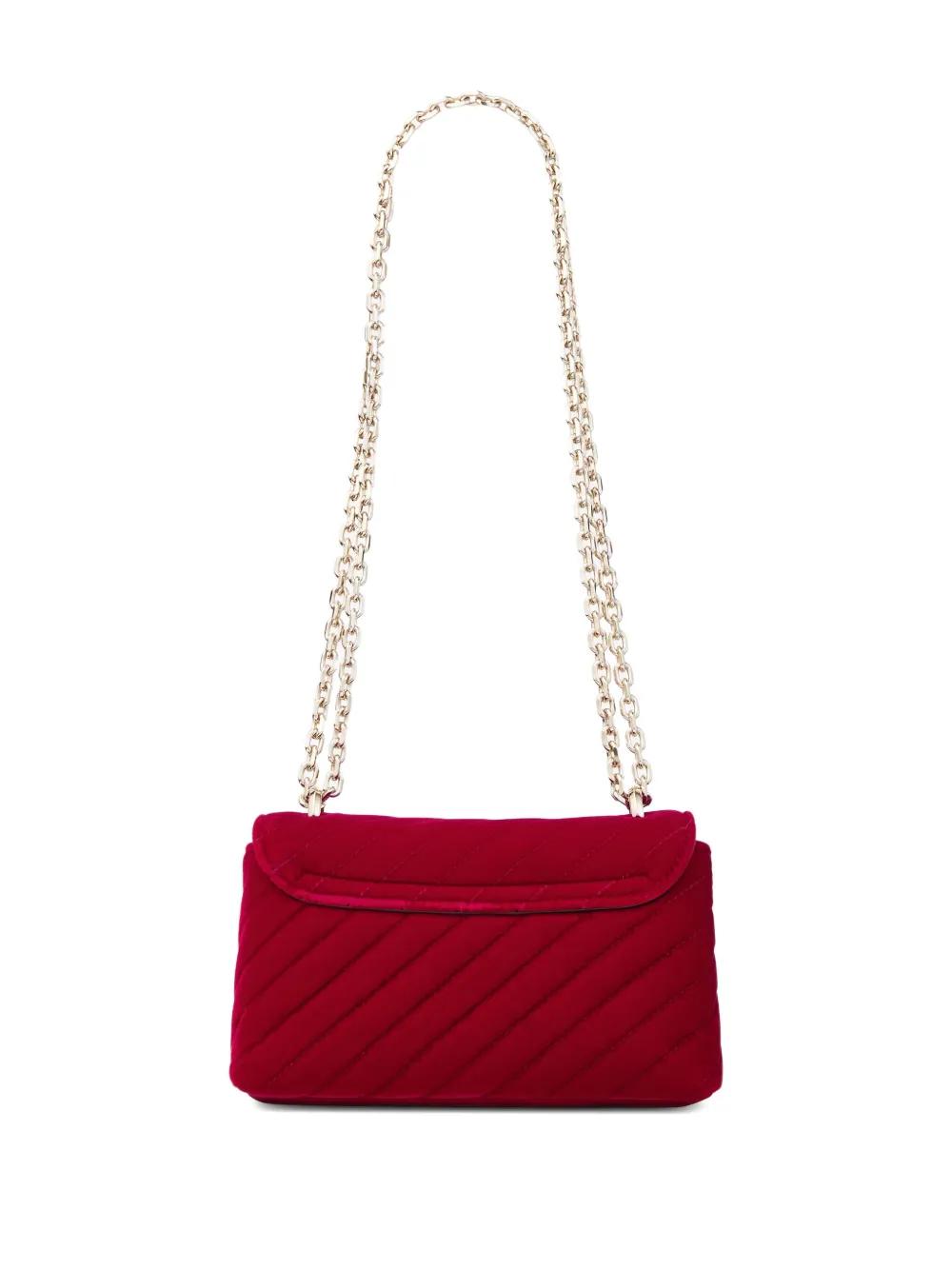 red quilted gold-tone hardware chain link shoulder strap foldover top