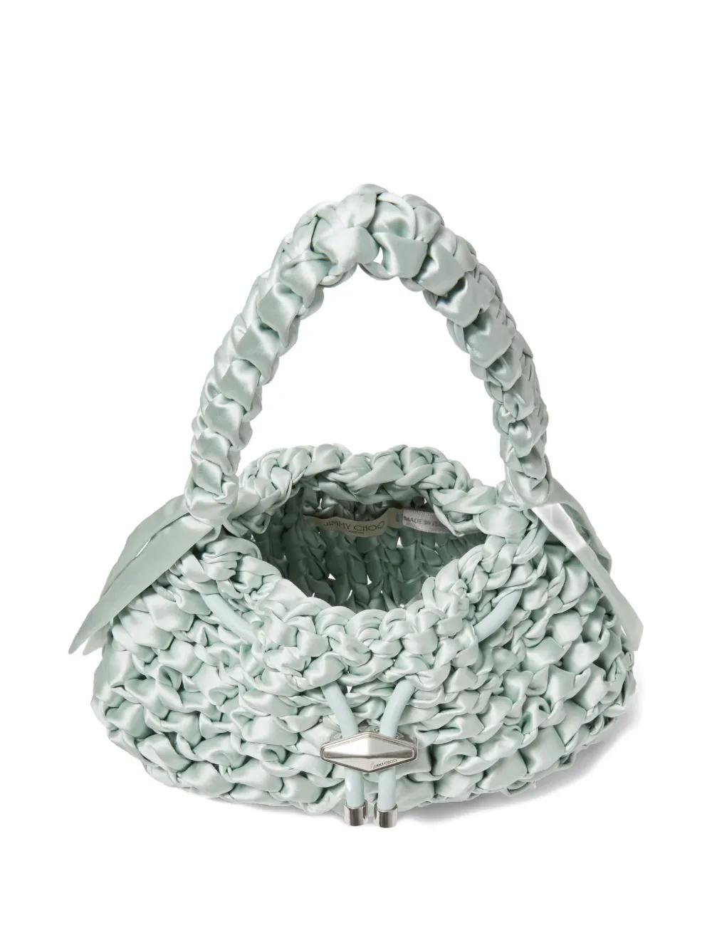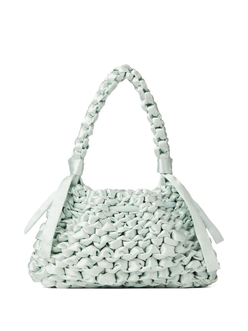 mint green braided strap interwoven design drawstring fastening silver-tone hardware