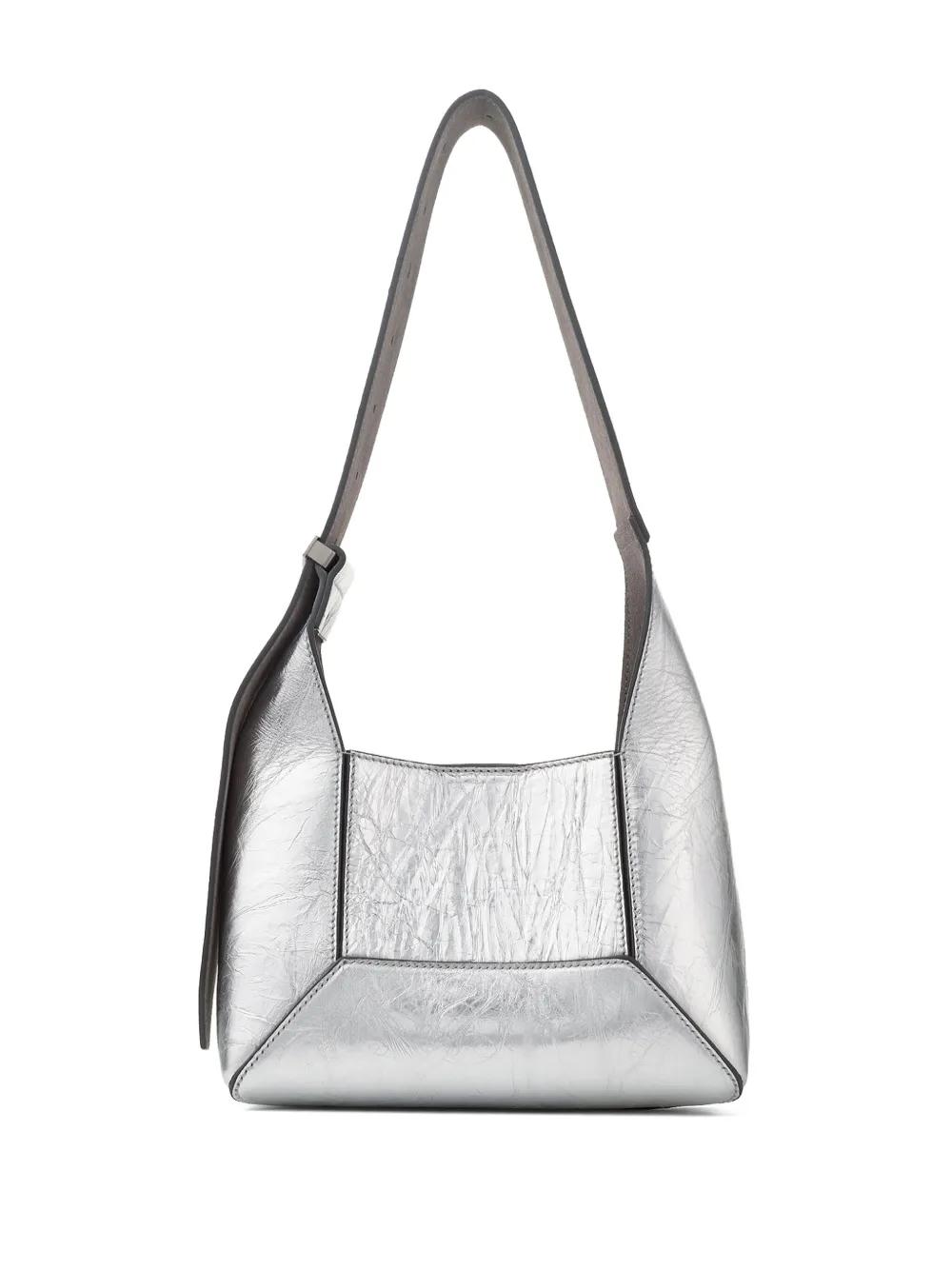 silver-tone calf leather cracked effect concealed magnetic fastening adjustable shoulder strap logo stamp to the front logo-engraved silver-tone hardware main compartment Wardrobe Icon