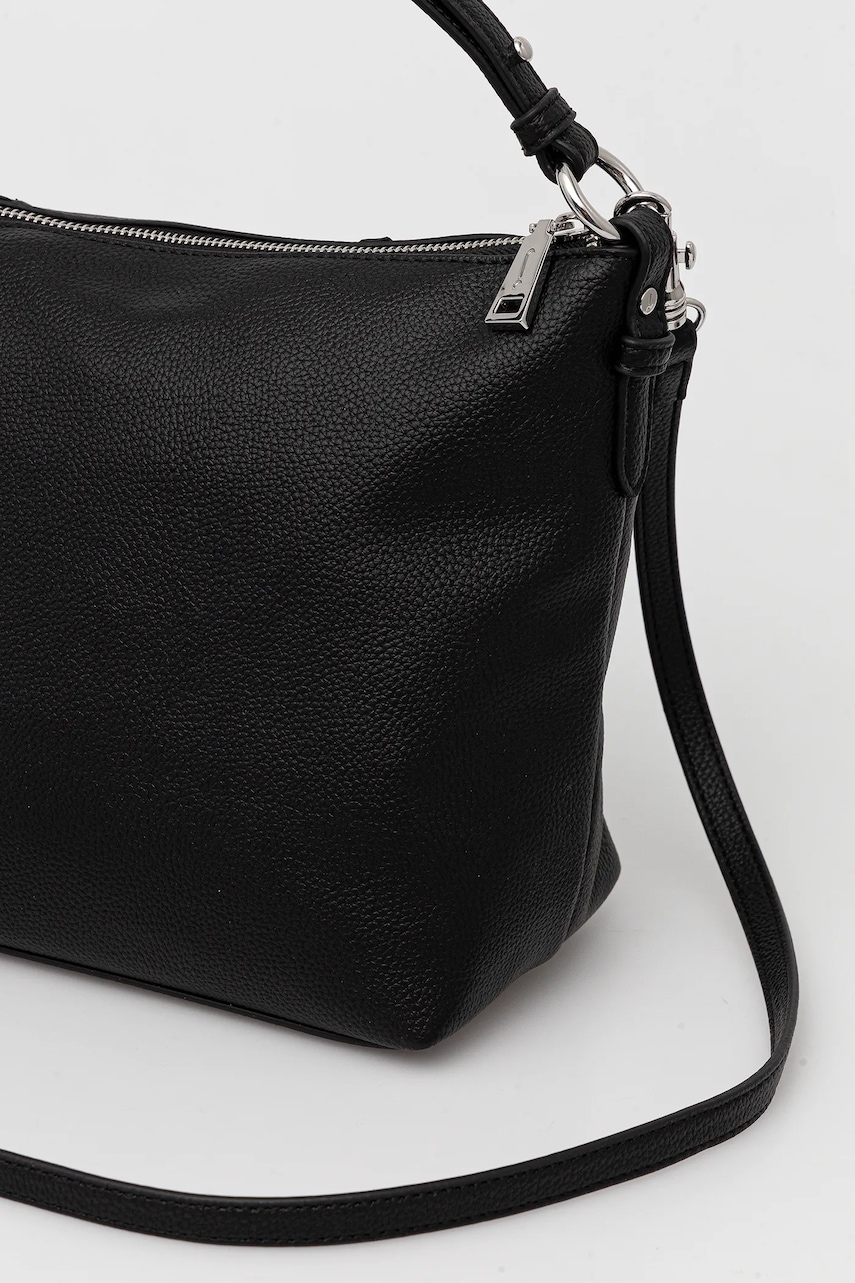 - Komora zapinana na suwak. - Kieszonka wewnętrzna zapinana na suwak. - Model z podszewką. - Nie mieści formatu A4. - Posiada uchwyt i odpinany pasek z regulacją. - Wsuwana kieszeń wewnętrzna. - Długość uchwytu: 38 cm. - Długość minimalna paska: 115 cm. - Długość maksymalna paska: 125 cm. - Głębokość: 12 cm. - Wysokość: 22 cm. - Szerokość u podstawy: 26 cm.