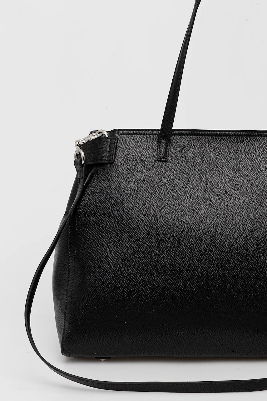 - Komora zapinana na suwak. - Posiada uchwyty i odpinany pasek z regulacją. - Posiada kieszonki wewnętrzne, w tym jedną zapinaną na suwak. - Mieści format A4. - Model z podszewką. - Model wyposażony w metalowe nóżki, które zabezpieczają spód torebki. - Dołączony tekstylny worek zabezpiecza produkt przed kurzem. - Długość minimalna paska: 111 cm. - Długość maksymalna paska: 123 cm. - Długość uchwytów: 56 cm. - Głębokość: 11,5 cm. - Wysokość: 30 cm. - Szerokość u podstawy: 41 cm.