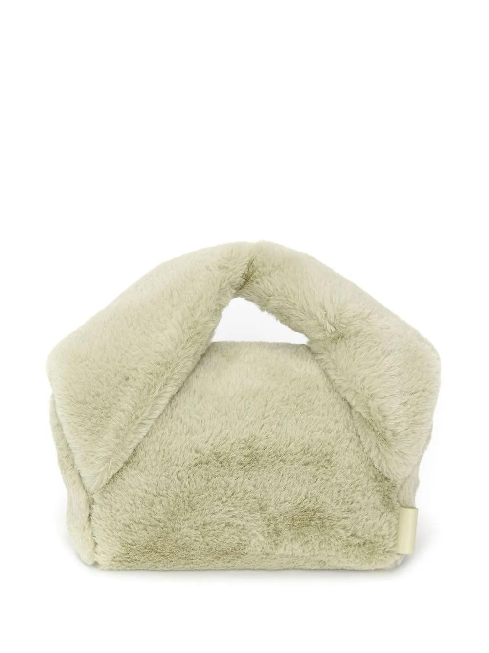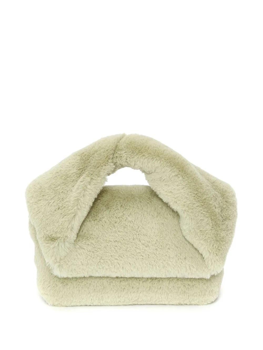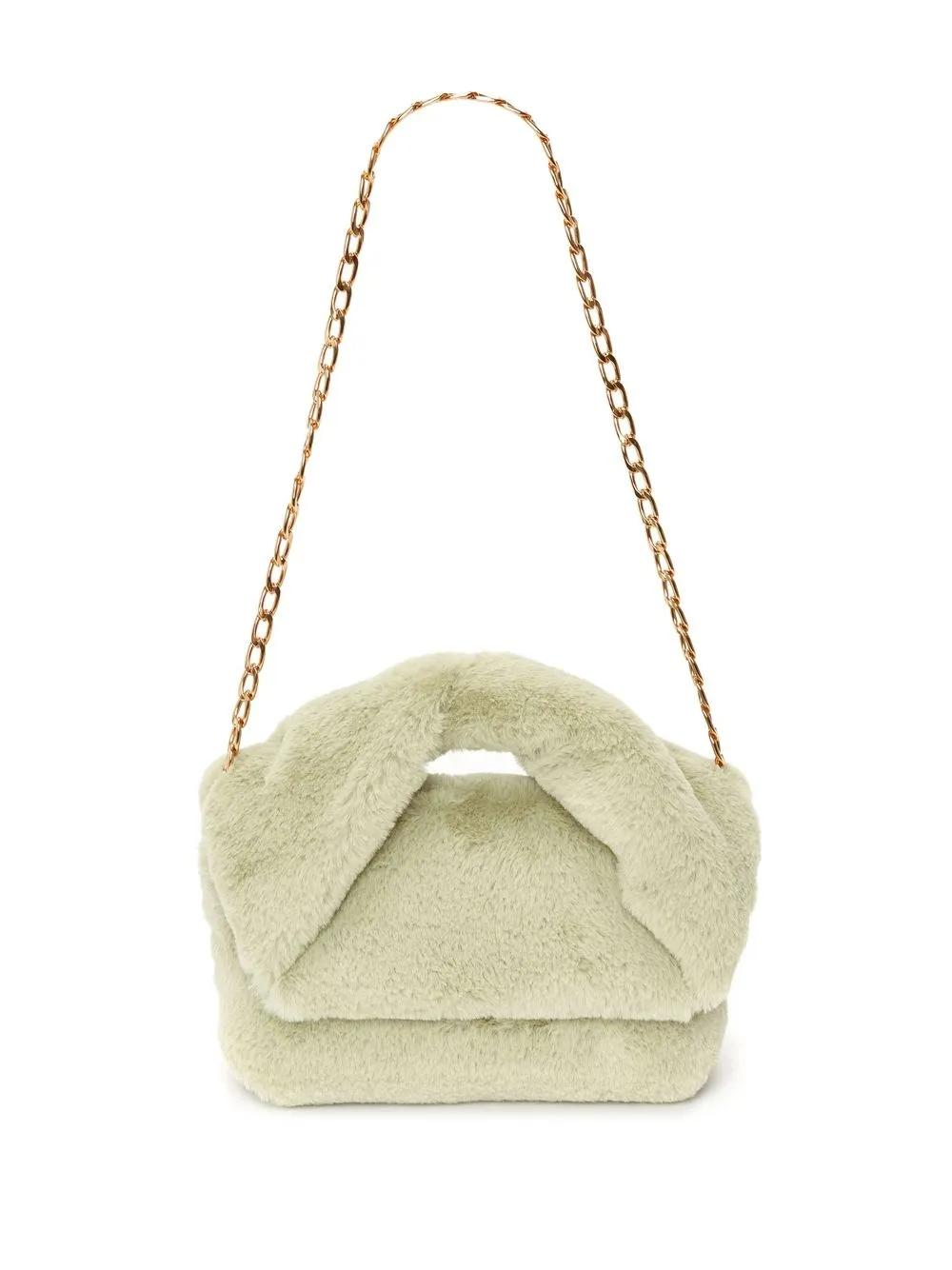 sage green shearling detachable chain-link shoulder strap twist detailing foldover top with magnetic fastening single circular top handle main compartment internal logo stamp